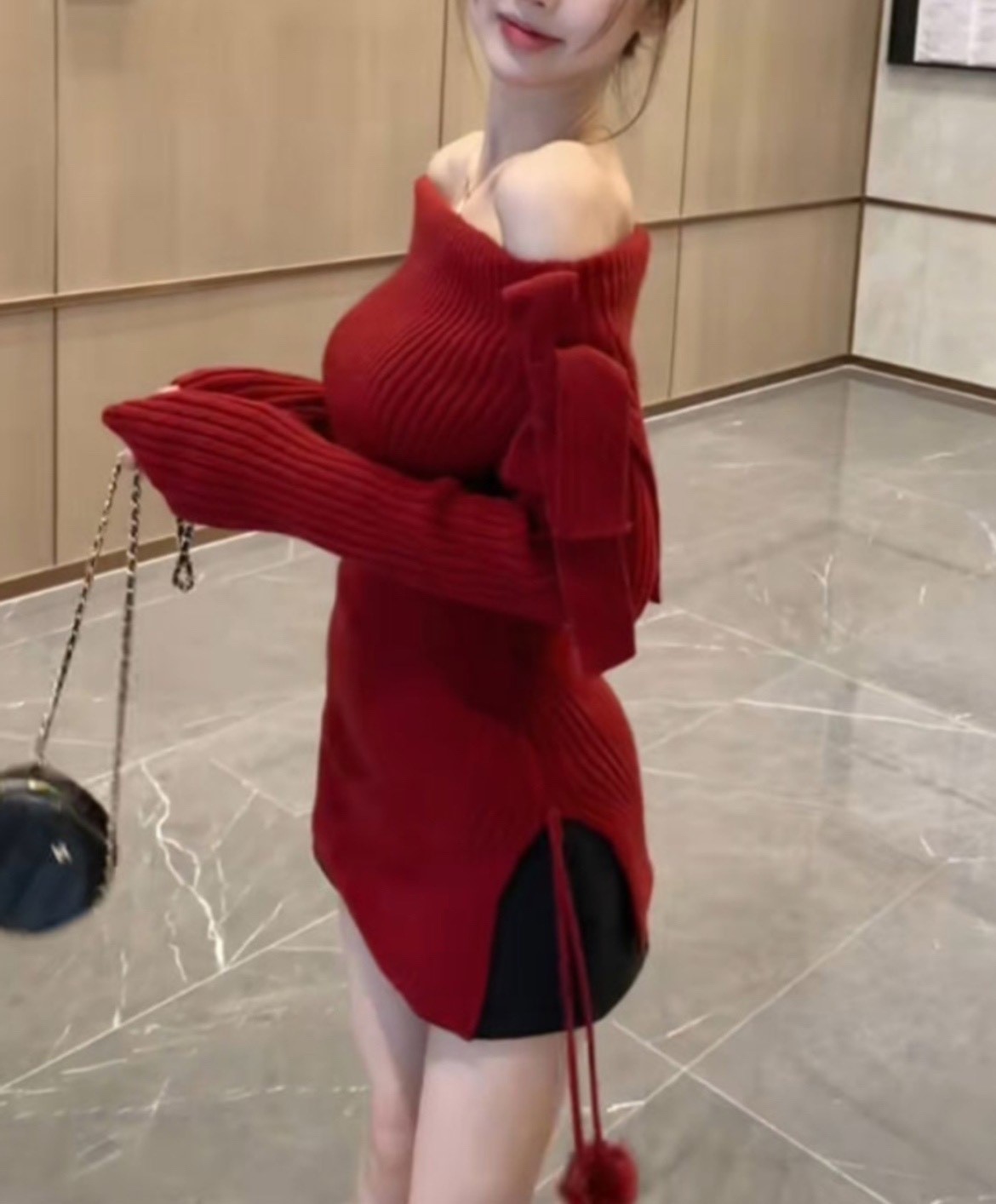 品名:방울오프숄더원피스 #여성상의캐주얼시크로맨틱하의미니스커트 ◎※☞颜色:레드, 블랙, 아이보리 ◎※☞尺寸:FREE ◎※☞材质:聚酯 100%