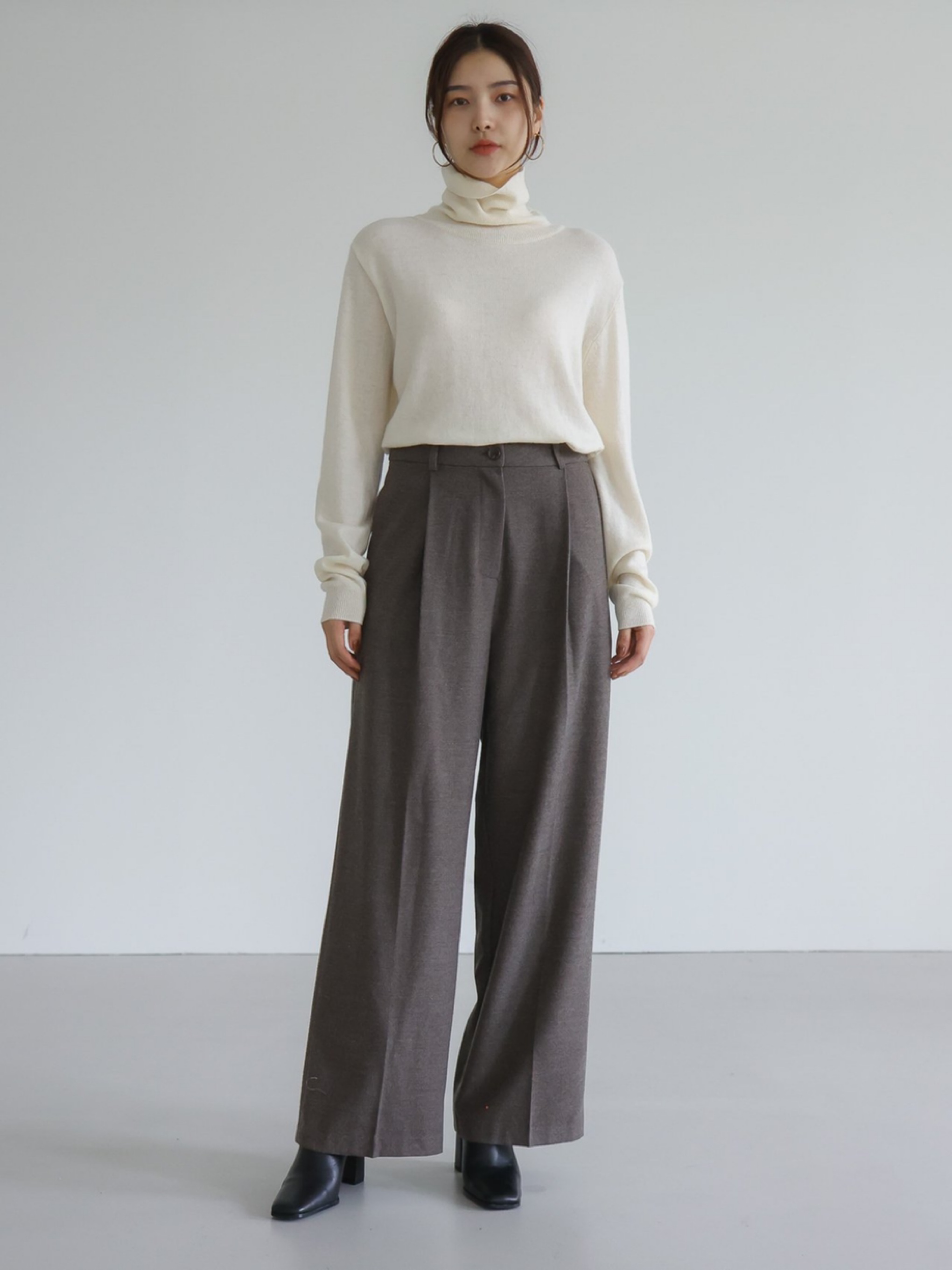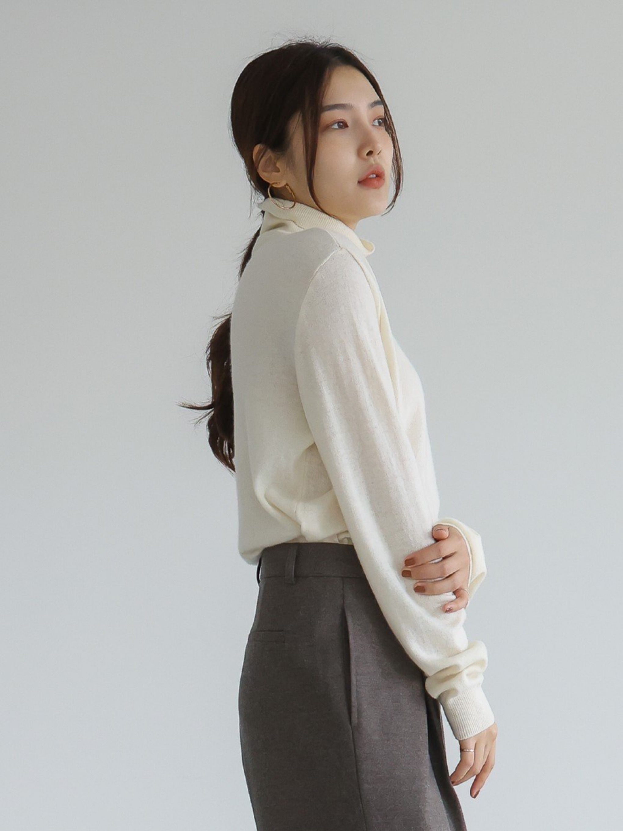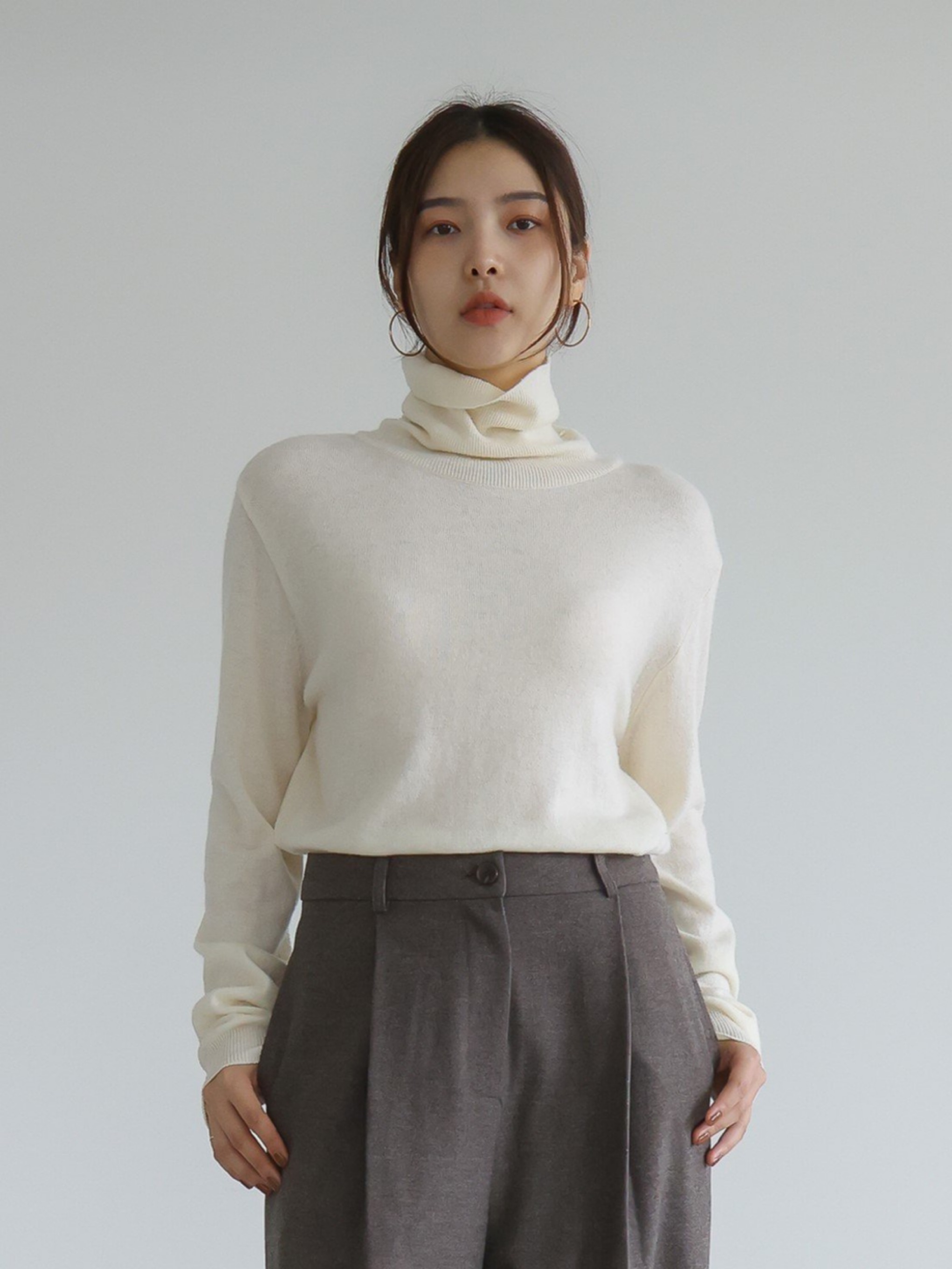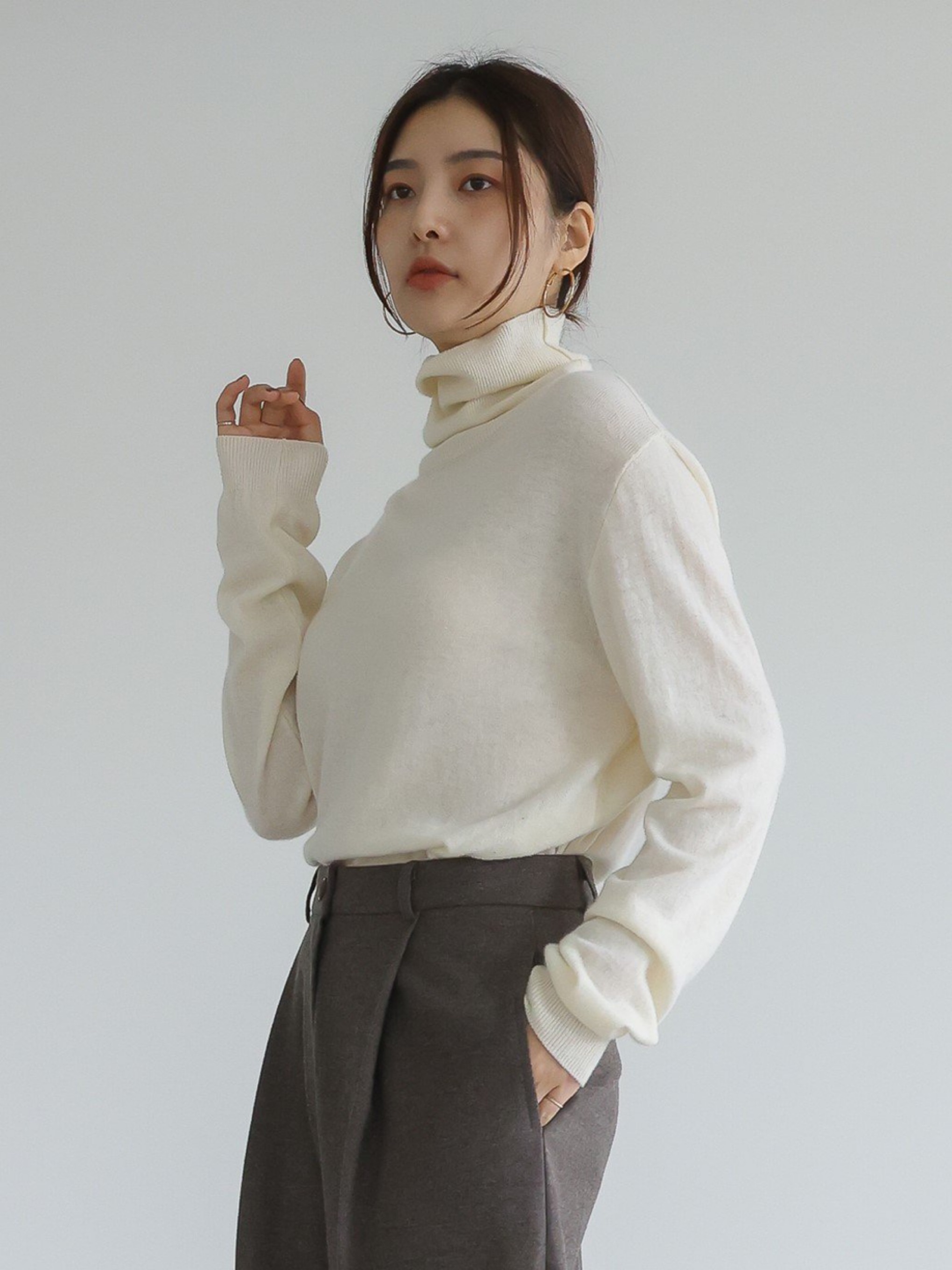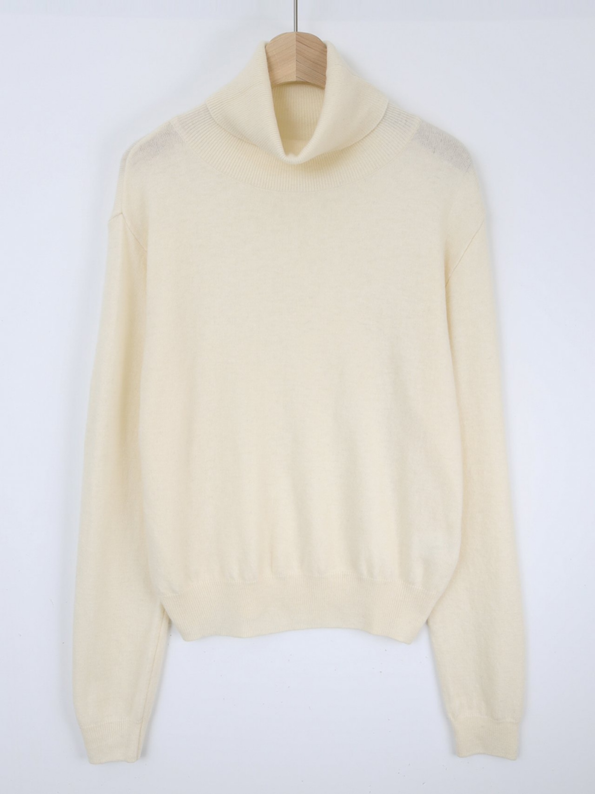 "가볍고 포근한 터치감이 돋보이는 캐시미어 소재를 사용해 편안한 착용감을 전해주는 니트 탑입니다. 목을 부드럽게 감싸는 폴라디자인으로 보온성을 높였으며, 점차 추추워지는 날씨에 꼭 하나쯤은 있어야 하는 아이템입니다."