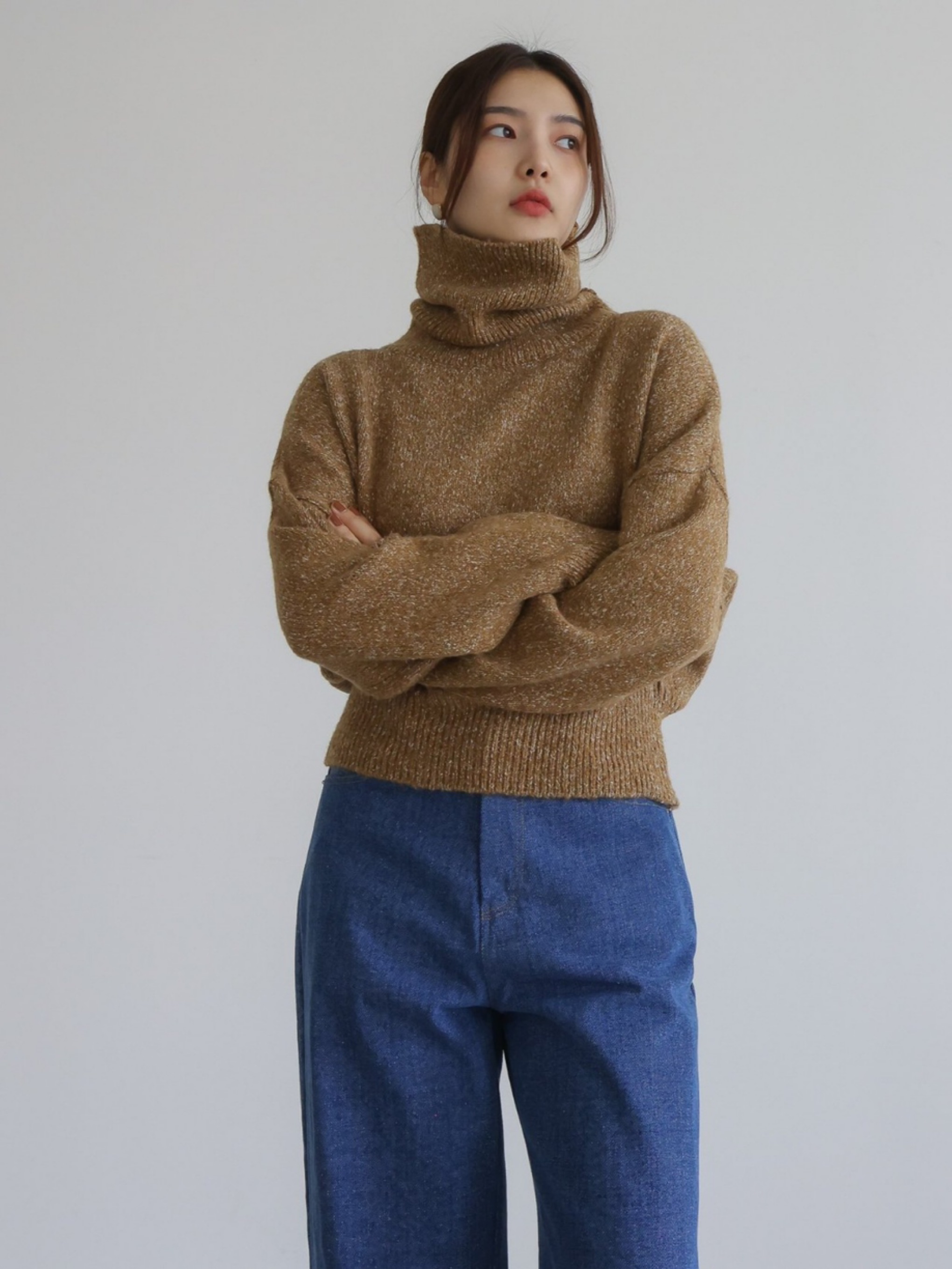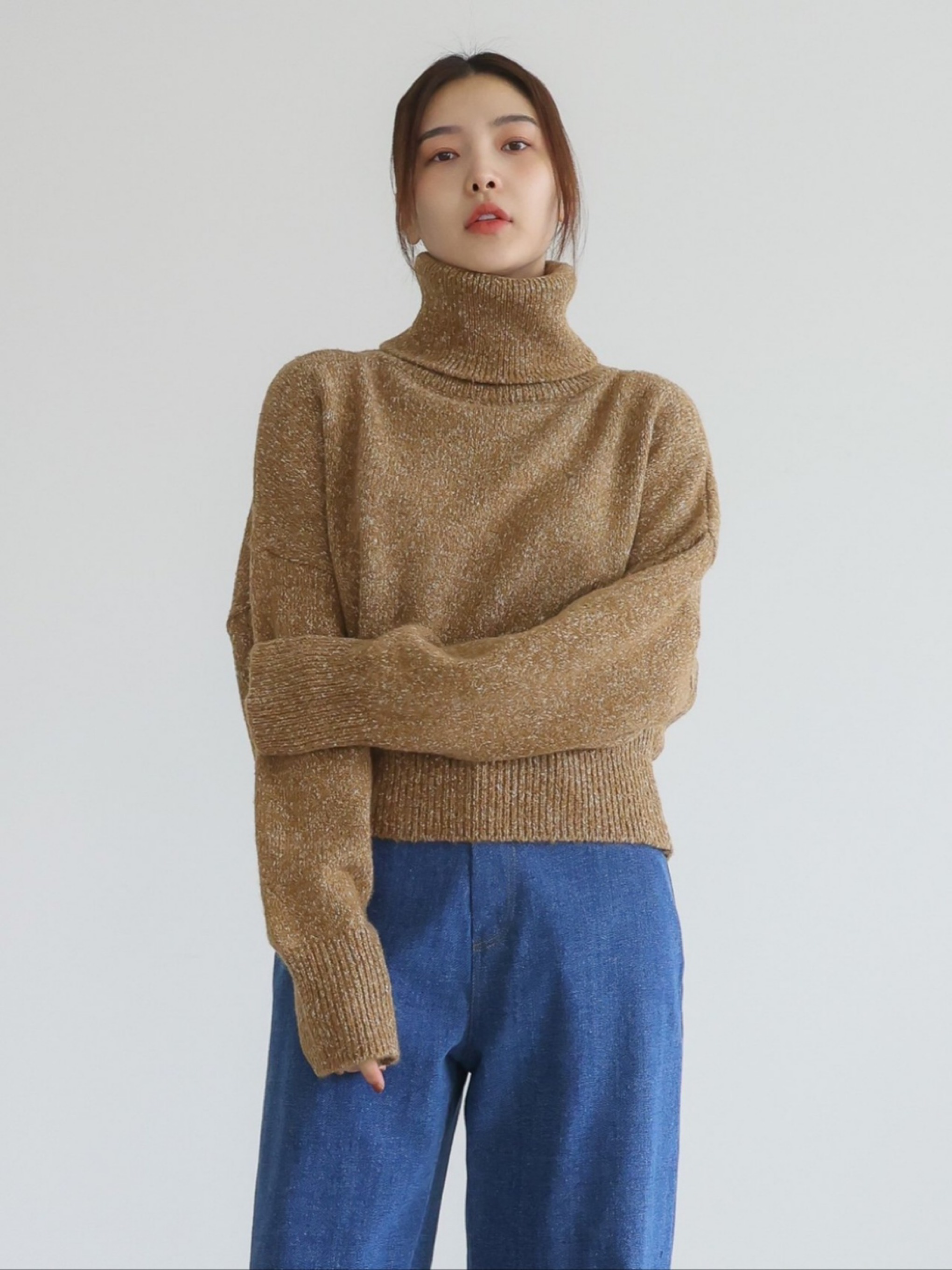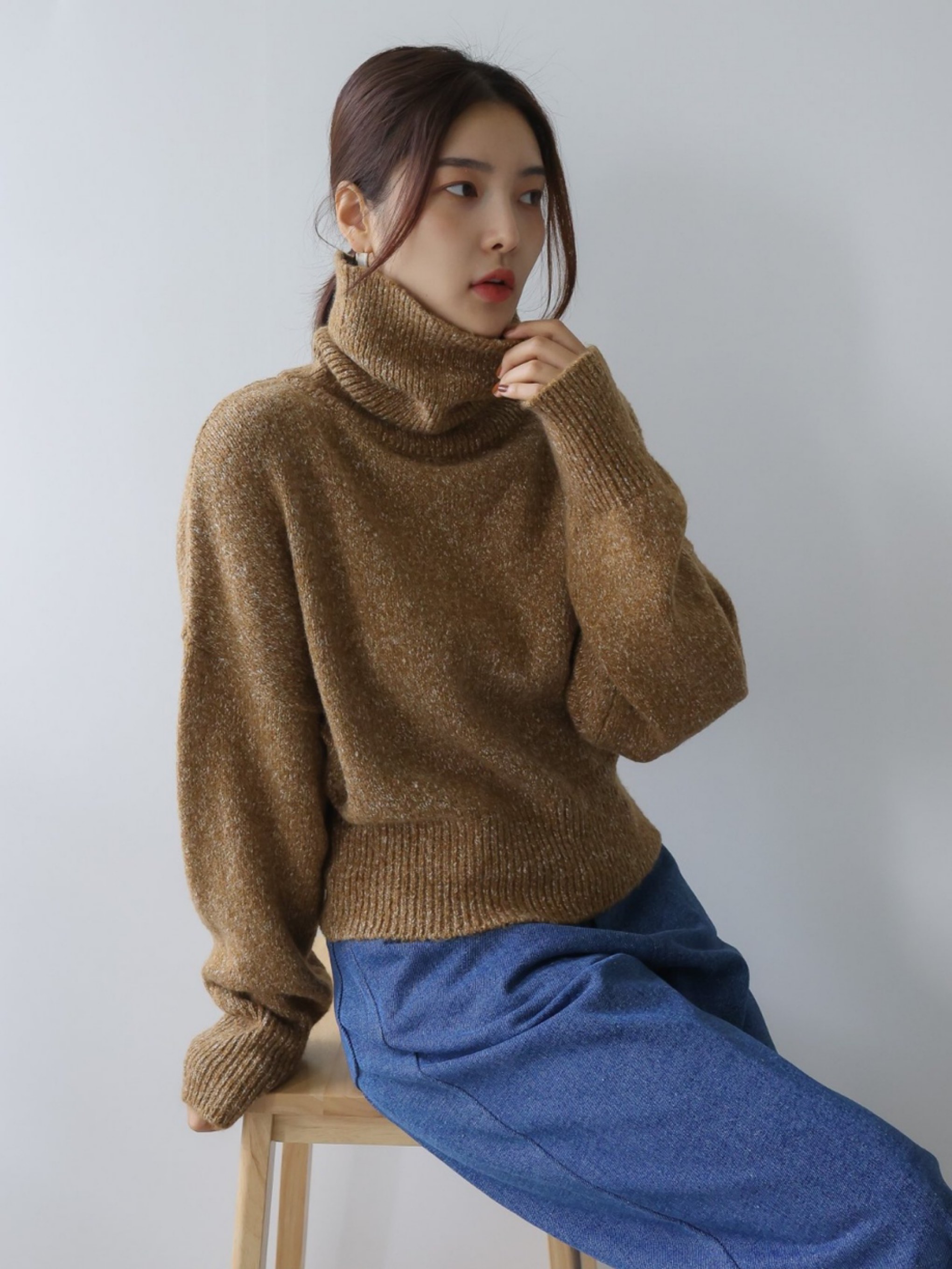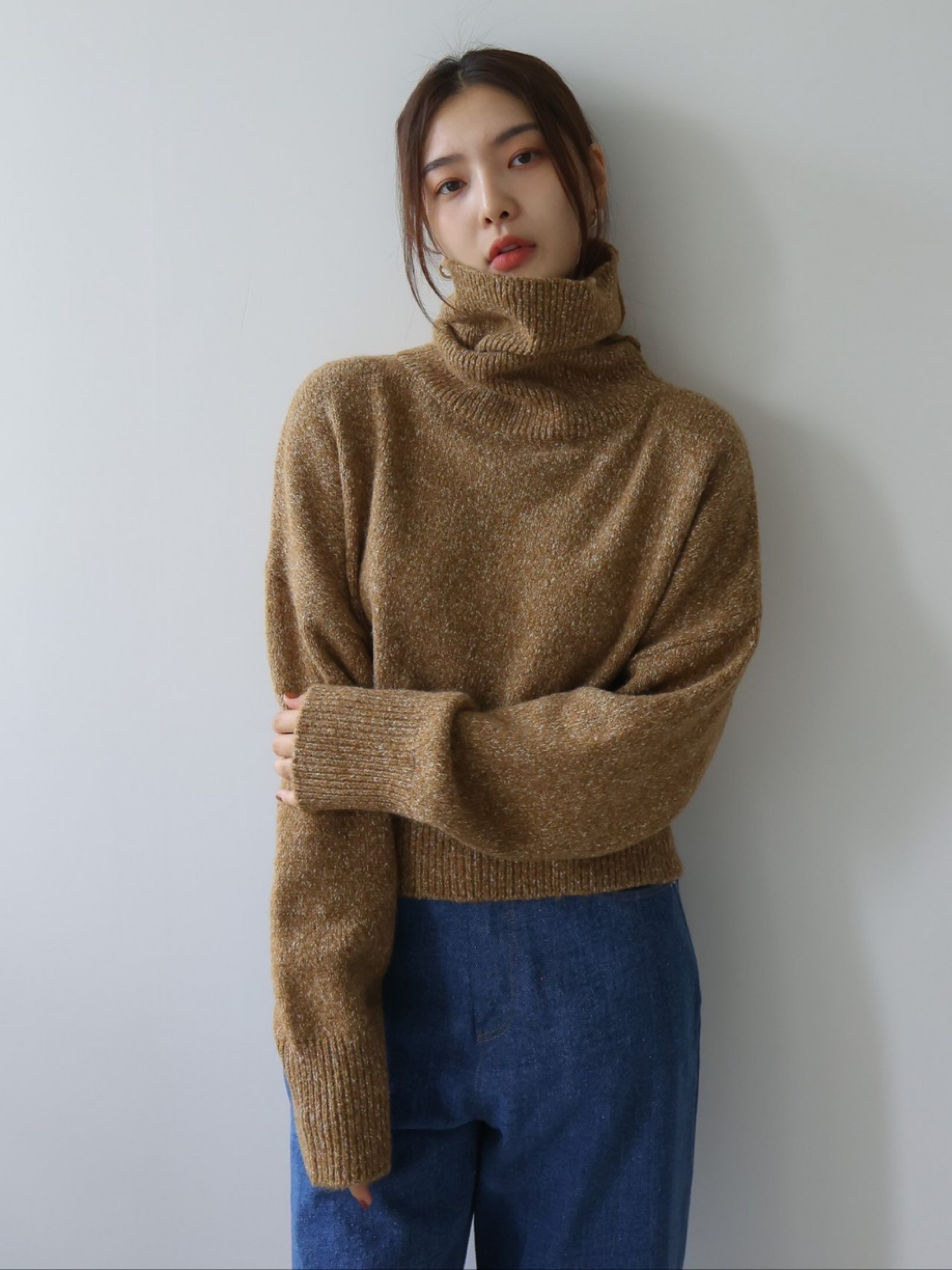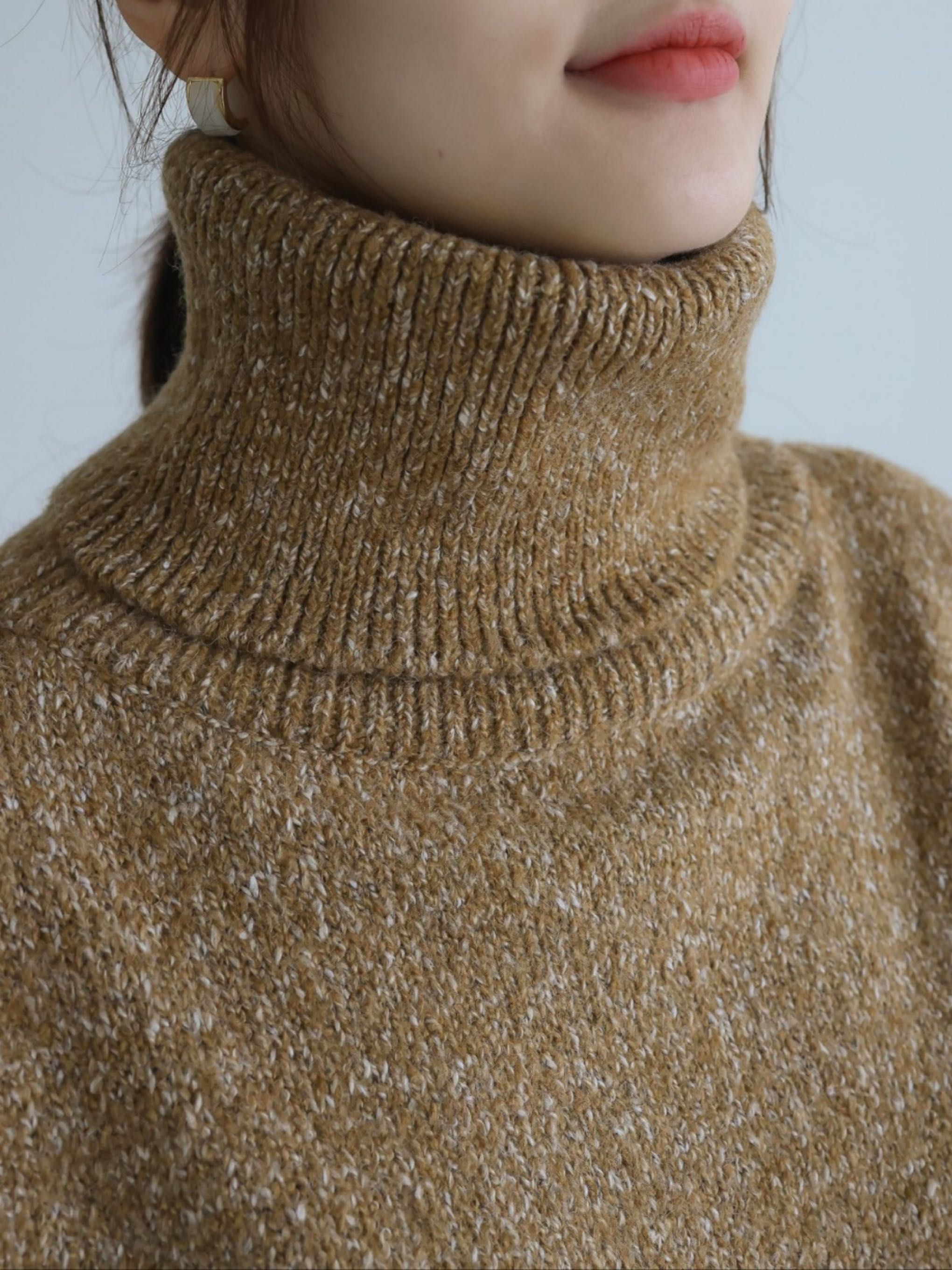 "가볍고 부드러운 터치감이 돋보이는 스노우 네프사 느낌의 고급 보카시특수사로 편안한 착용감을 전해주는 니트 탑입니다. 목을 부드럽게 감싸는 하이넥 디자인으로 보온성을 높였으며, 어디에든 두루 매치 가능한 아이템입니다."