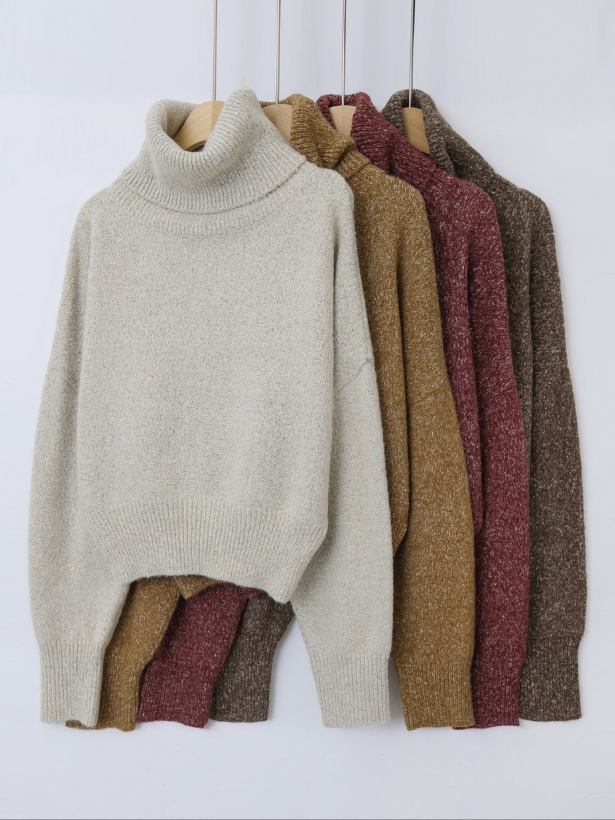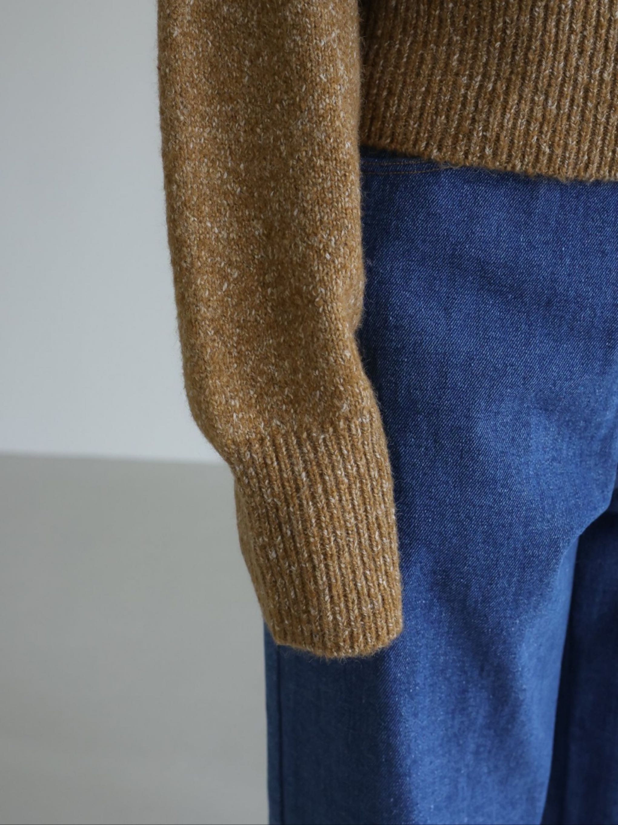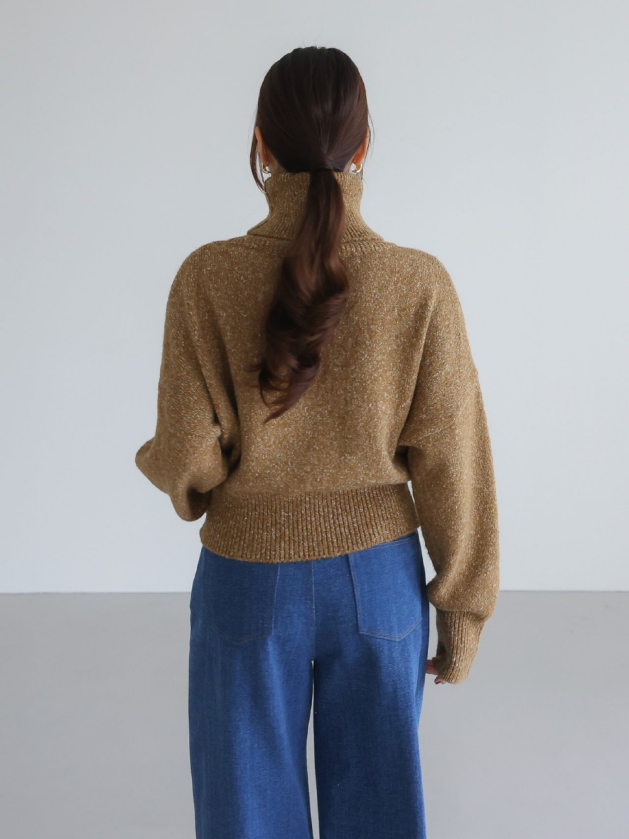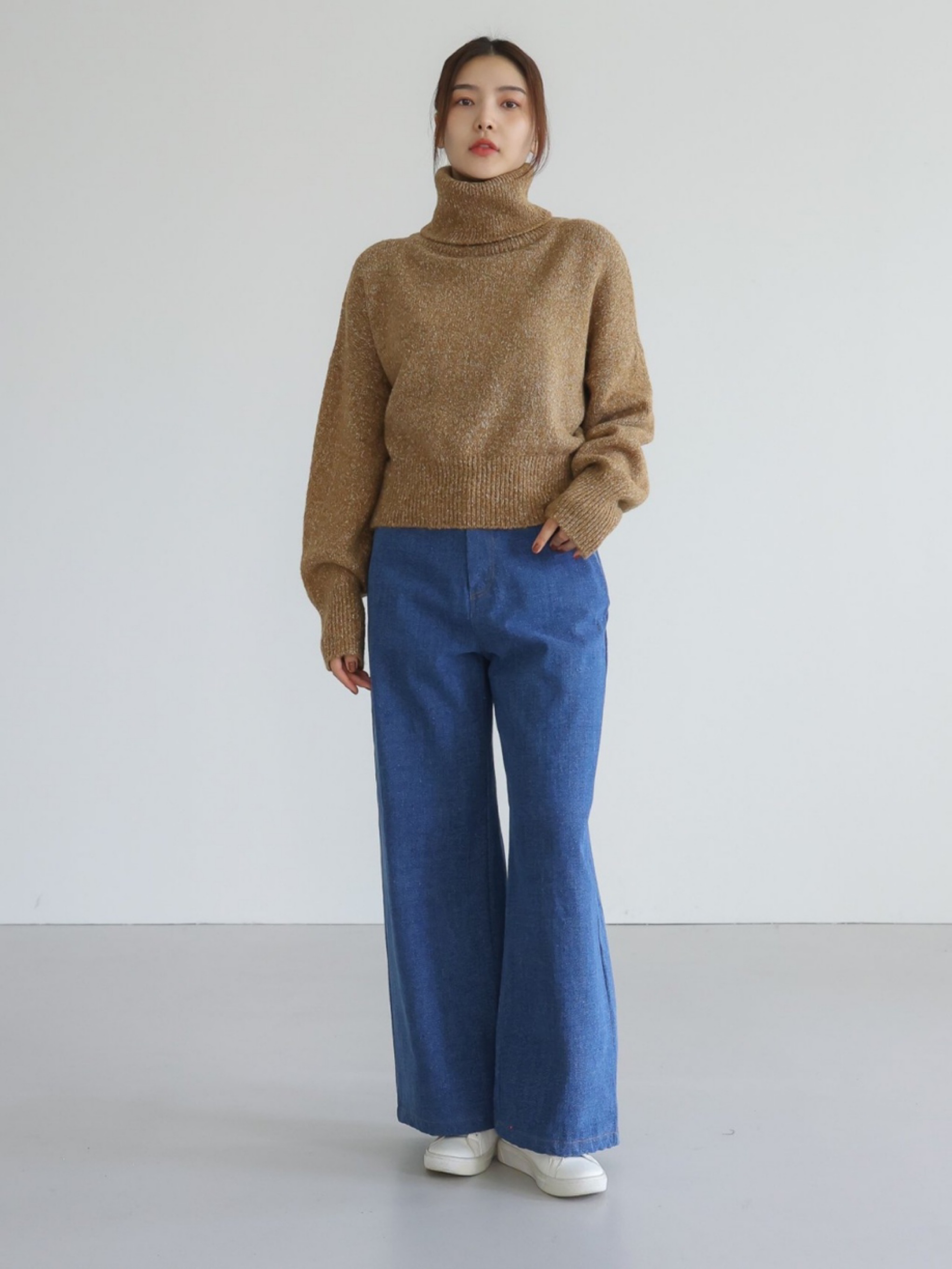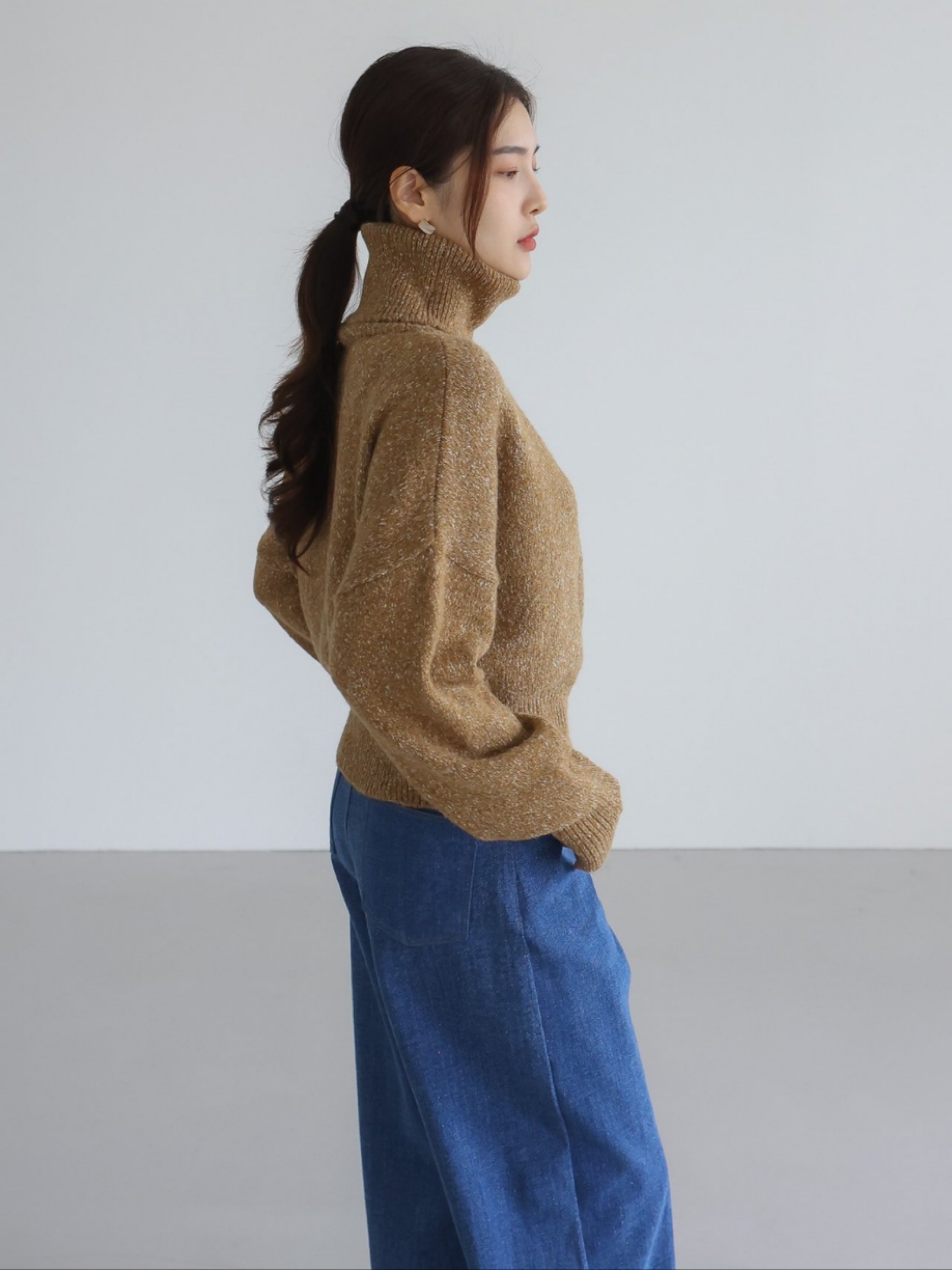 "가볍고 부드러운 터치감이 돋보이는 스노우 네프사 느낌의 고급 보카시특수사로 편안한 착용감을 전해주는 니트 탑입니다. 목을 부드럽게 감싸는 하이넥 디자인으로 보온성을 높였으며, 어디에든 두루 매치 가능한 아이템입니다."