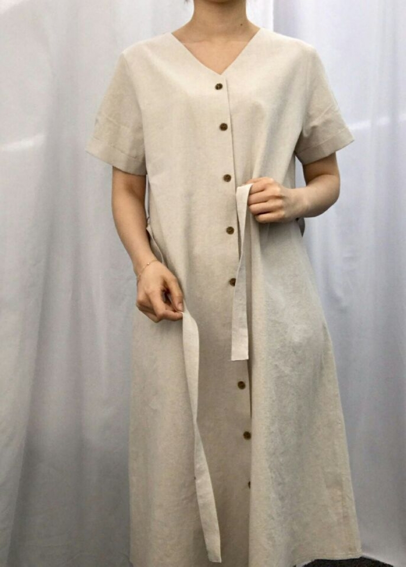 THEOT- V领短袖纯色连衣裙 翻译