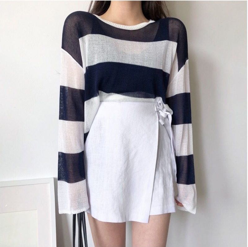 THEOT- 圆领长袖条纹针织衫/开衫 翻译