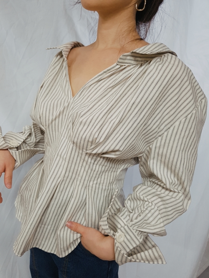 "TAM.N.DA"- 翻领长袖条纹衬衫 翻译