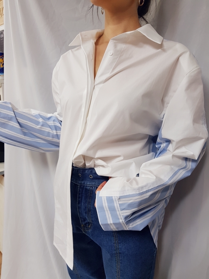 "TAM.N.DA"- 翻领长袖条纹衬衫 翻译