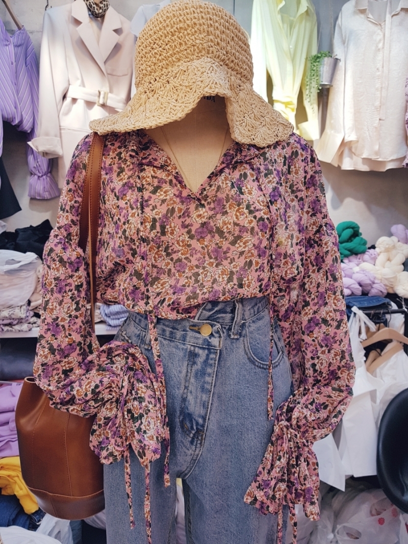 "TAM.N.DA"- V领长袖碎花衬衫 翻译