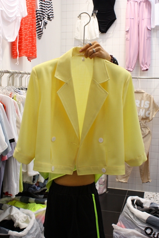 "TWELEVE PLUS"-G-523- 翻领短袖纯色西装 翻译