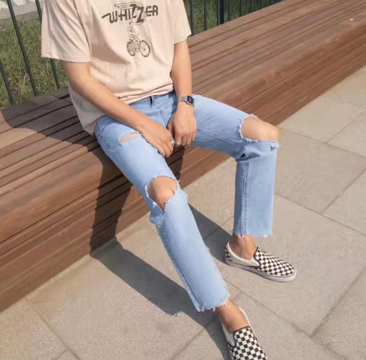 One color😄新款男装破洞牛仔裤,夏天穿着正合适,喜欢速来秒单哦