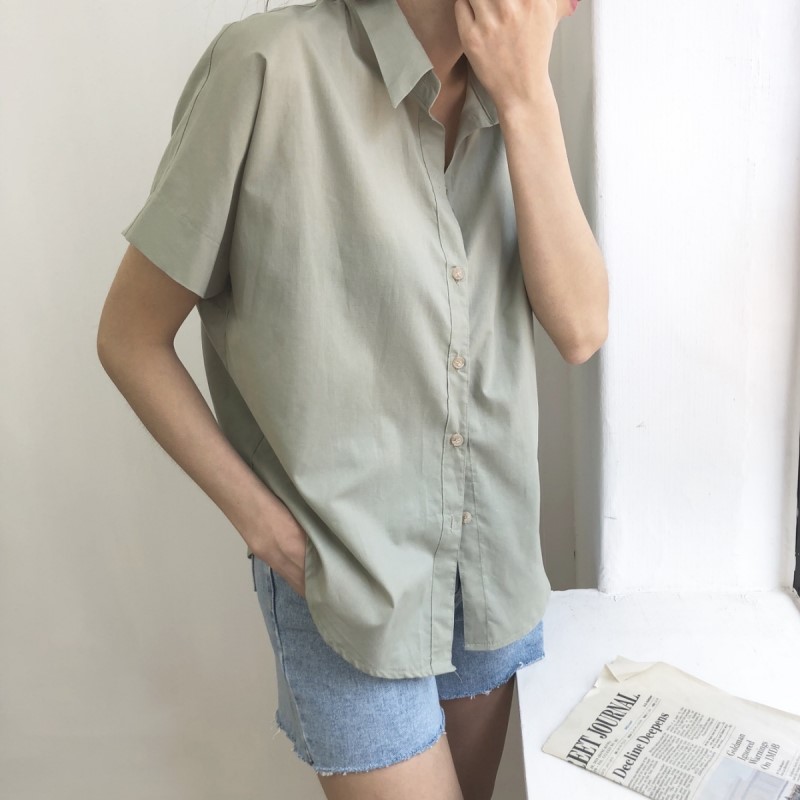 "ROCO ROCO"-OT-4B-27- 翻领短袖纯色衬衫 翻译
