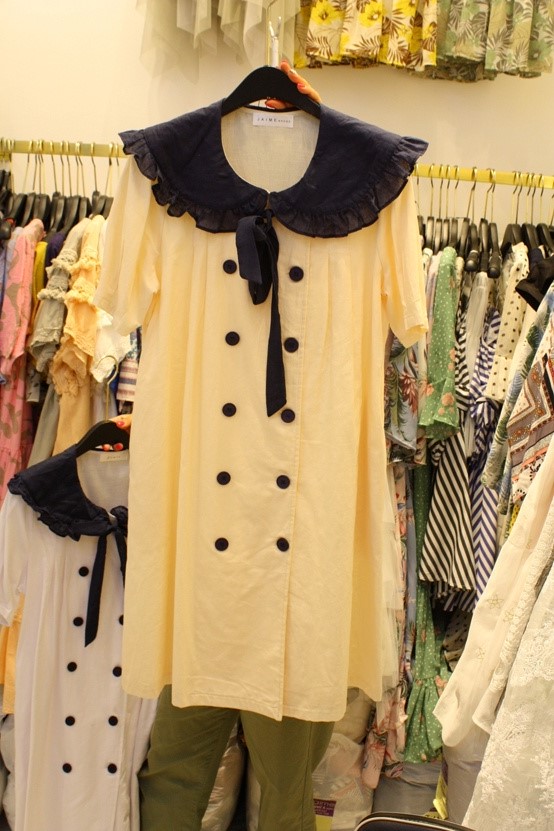"JAIME BREGE"-G-411- 翻领短袖带装饰连衣裙 翻译