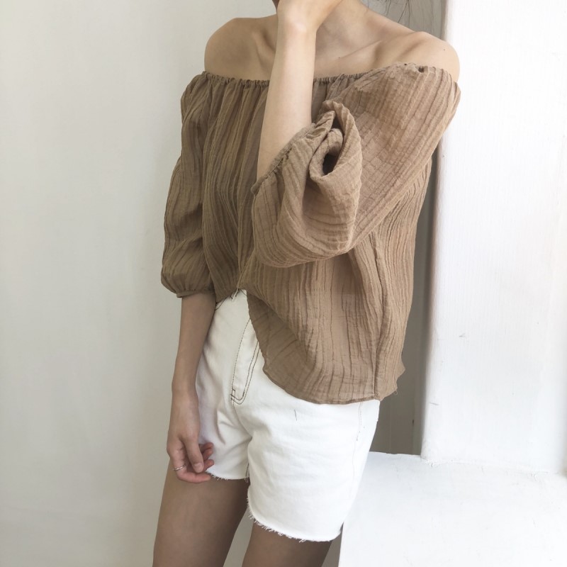 "ROCO ROCO"-OT-4B-27- 一字领七分袖纯色衬衫 翻译