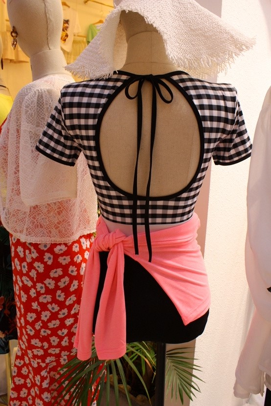 "TWELEVE PLUS"-G-523- 圆领短袖格子泳装 翻译