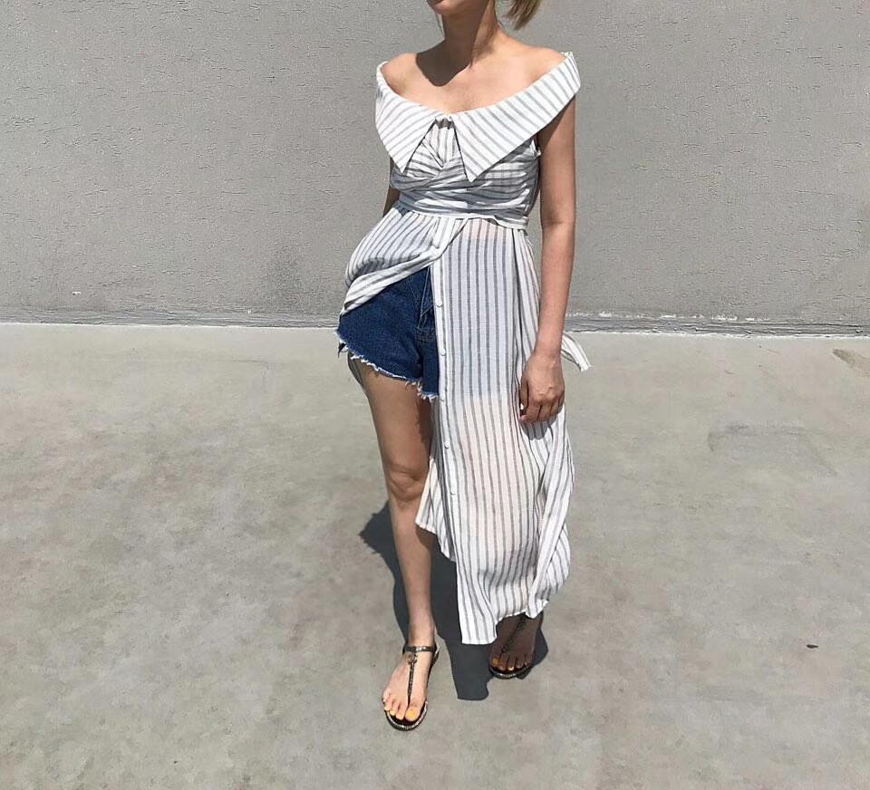 连衣裙 东大门新款条纹连衣裙
