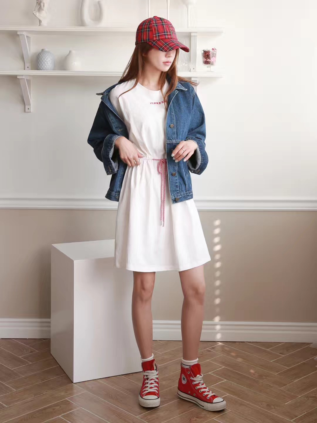 裙子 新款女士休闲连衣裙,简单好穿,腰间抽绳款式,上身效果也很好,喜欢速来秒单啦