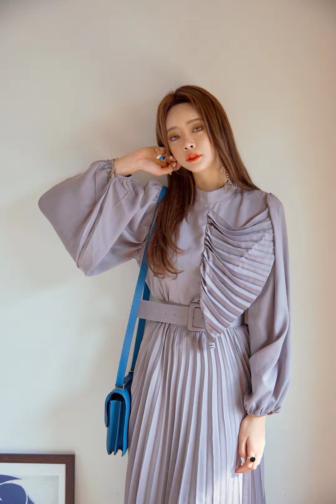 裙子 秋冬新款女式名媛气质感连衣裙,胸前褶皱花设计,时尚感十足,喜欢速来秒单