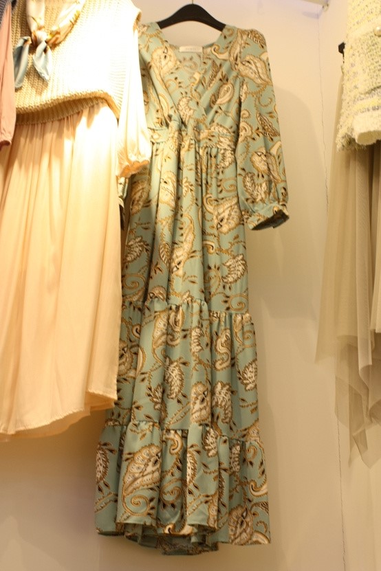 "JAIME BREGE"-G-411- V领长袖印花连衣裙 翻译