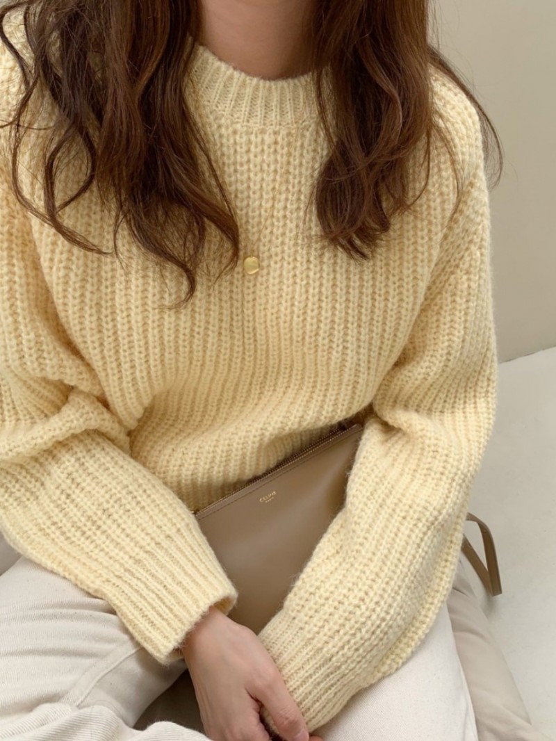 "LIBRE"-OT-3B-18- 圆领长袖纯色针织衫/开衫 翻译
