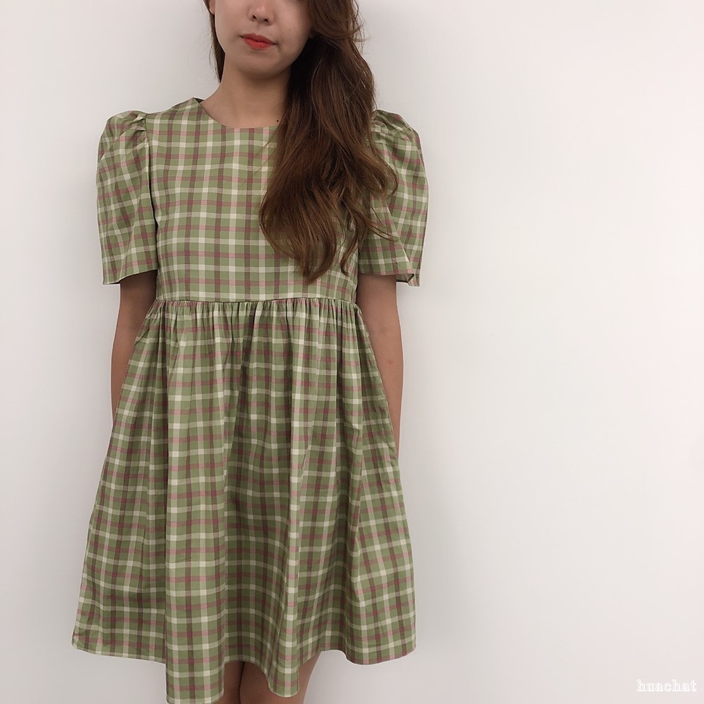 체크 반 소매 원피스