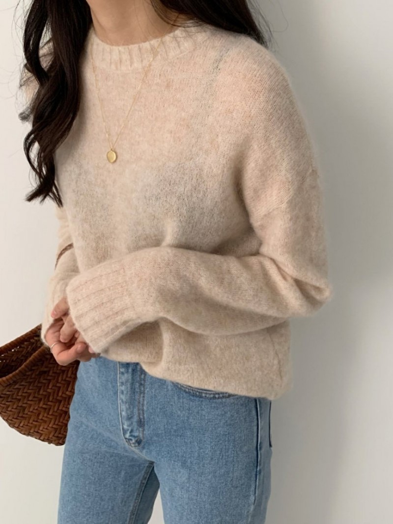 "LIBRE"-OT-3B-18- 圆领长袖纯色针织衫/开衫 翻译