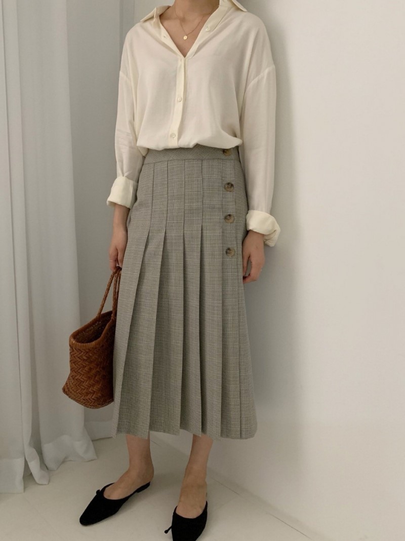 "LIBRE"-OT-3B-18- 百褶裙纯色长裙 翻译