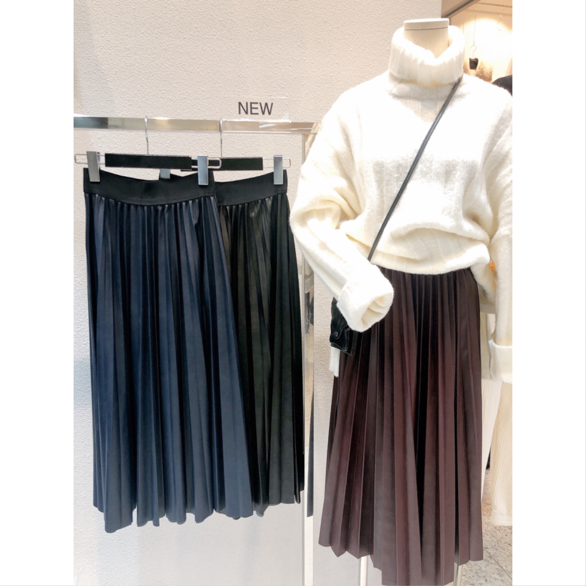 레더주름스커트