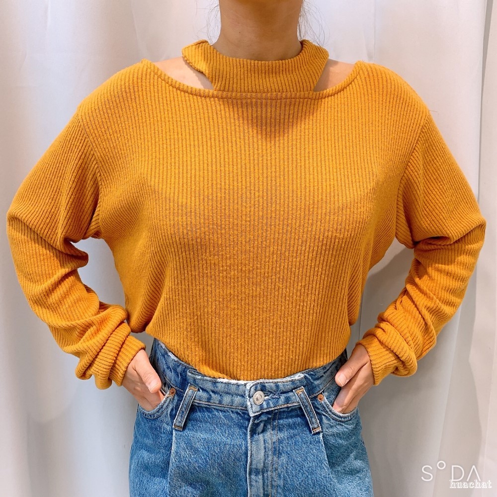 골지 니트 티셔츠 홀터넥