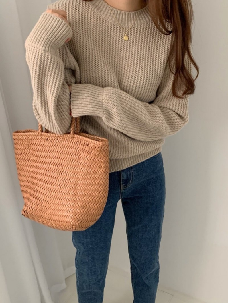 "LIBRE"-OT-3B-18- 圆领长袖纯色针织衫/开衫 翻译