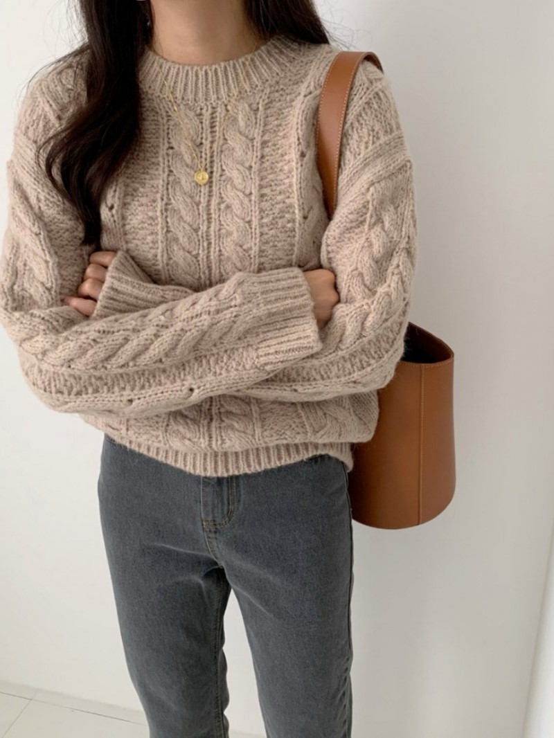 "LIBRE"-OT-3B-18- 圆领长袖纯色针织衫/开衫 翻译