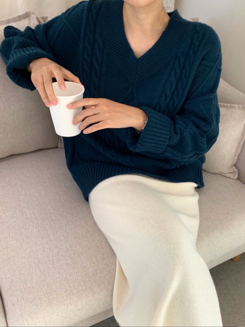 "INOUF"-OT-3E-20- V领长袖纯色针织衫/开衫 翻译