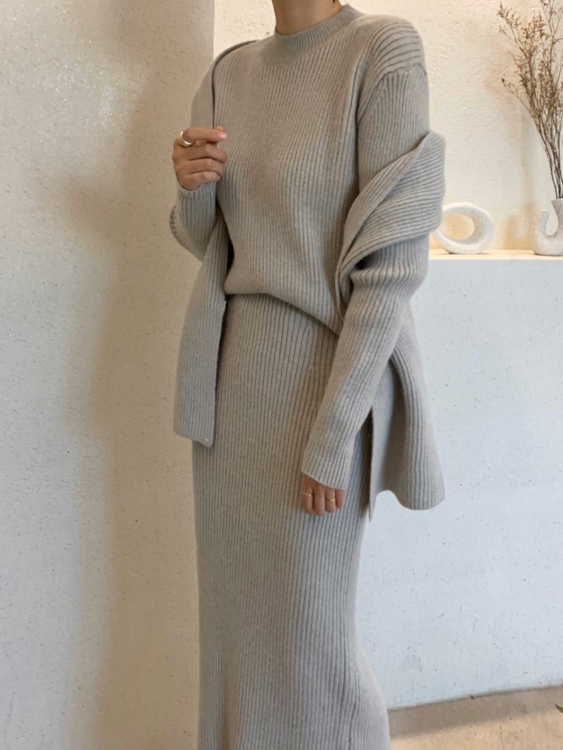 "INOUF"-OT-3E-20- 圆领长袖纯色连衣裙 翻译