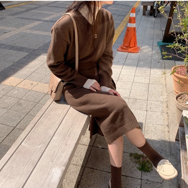 "ROCO ROCO"-OT-4B-27- V领长袖纯色连衣裙 翻译