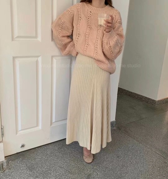 "herstory"-G-3-063- 圆领长袖纯色针织衫/开衫 翻译