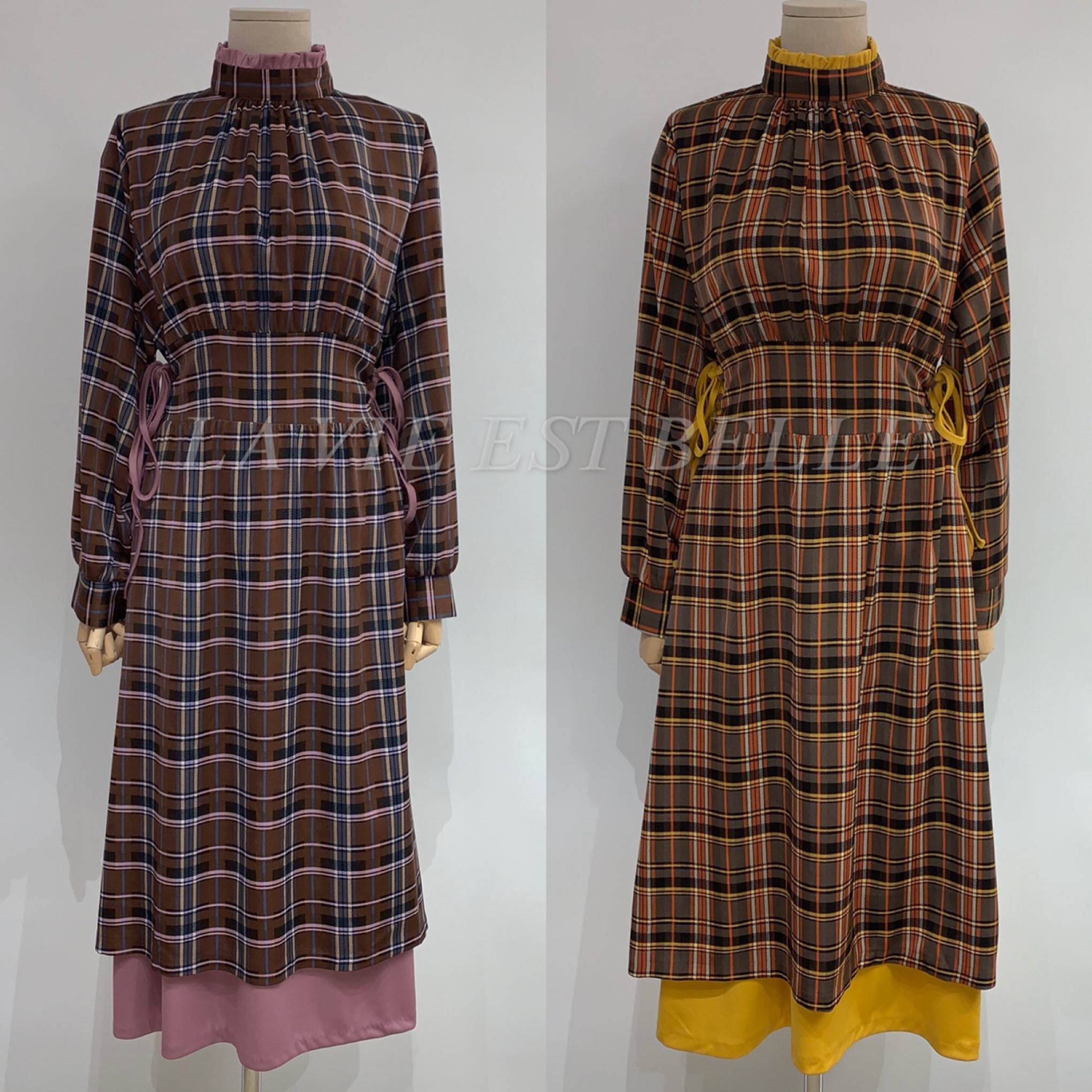 체크배색 원피스 (ops)
