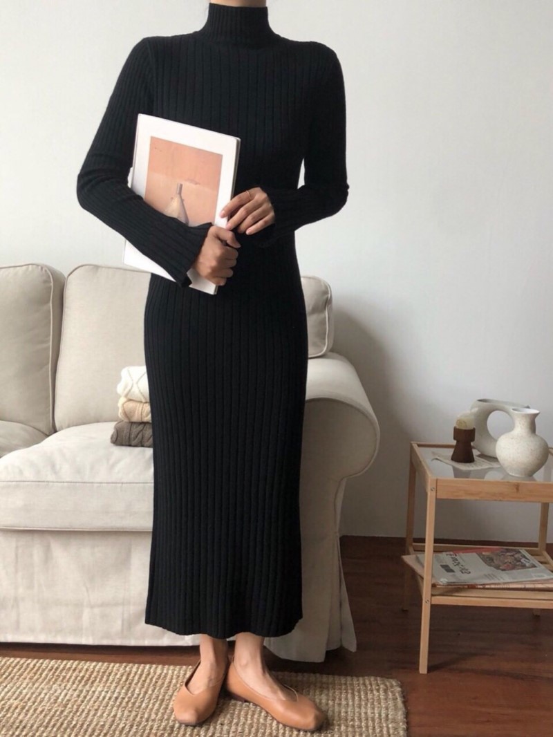 "INOUF"-OT-3E-20- 高领长袖纯色连衣裙 翻译