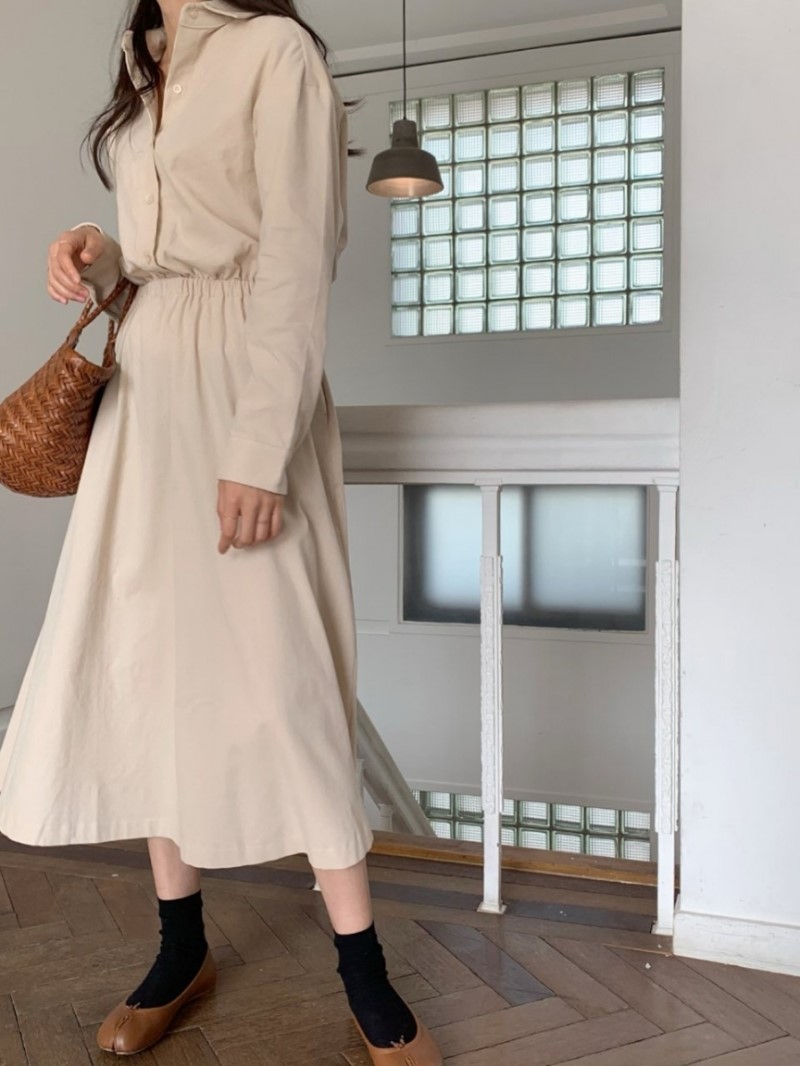 "LIBRE"-OT-3B-18- 翻领长袖纯色连衣裙 翻译