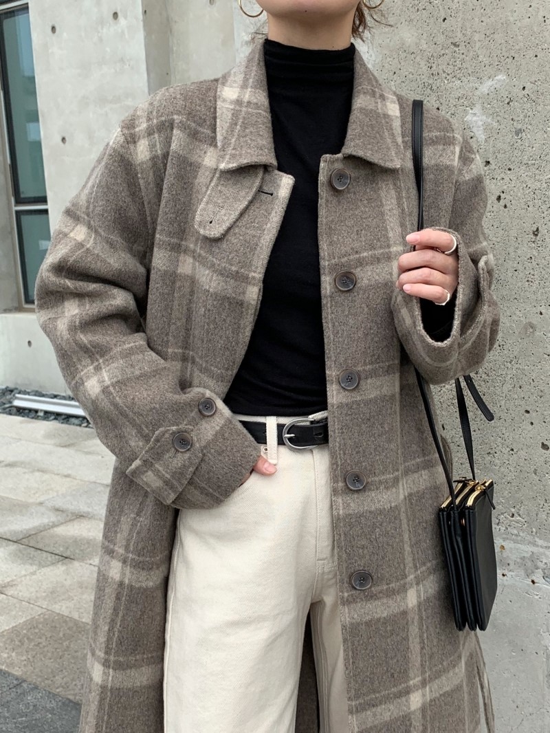 "MELLOUNGE"-OT-3H-08- 翻领长袖格子大衣 翻译