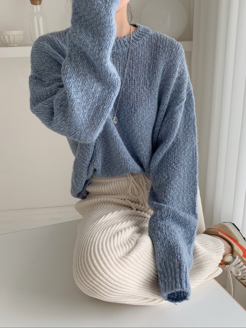"MELLOUNGE"-OT-3H-08- 圆领长袖纯色针织衫/开衫 翻译