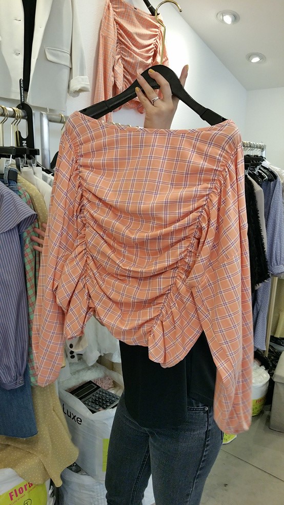 "FLORAL"-L-408- 圆领长袖格子衬衫 翻译