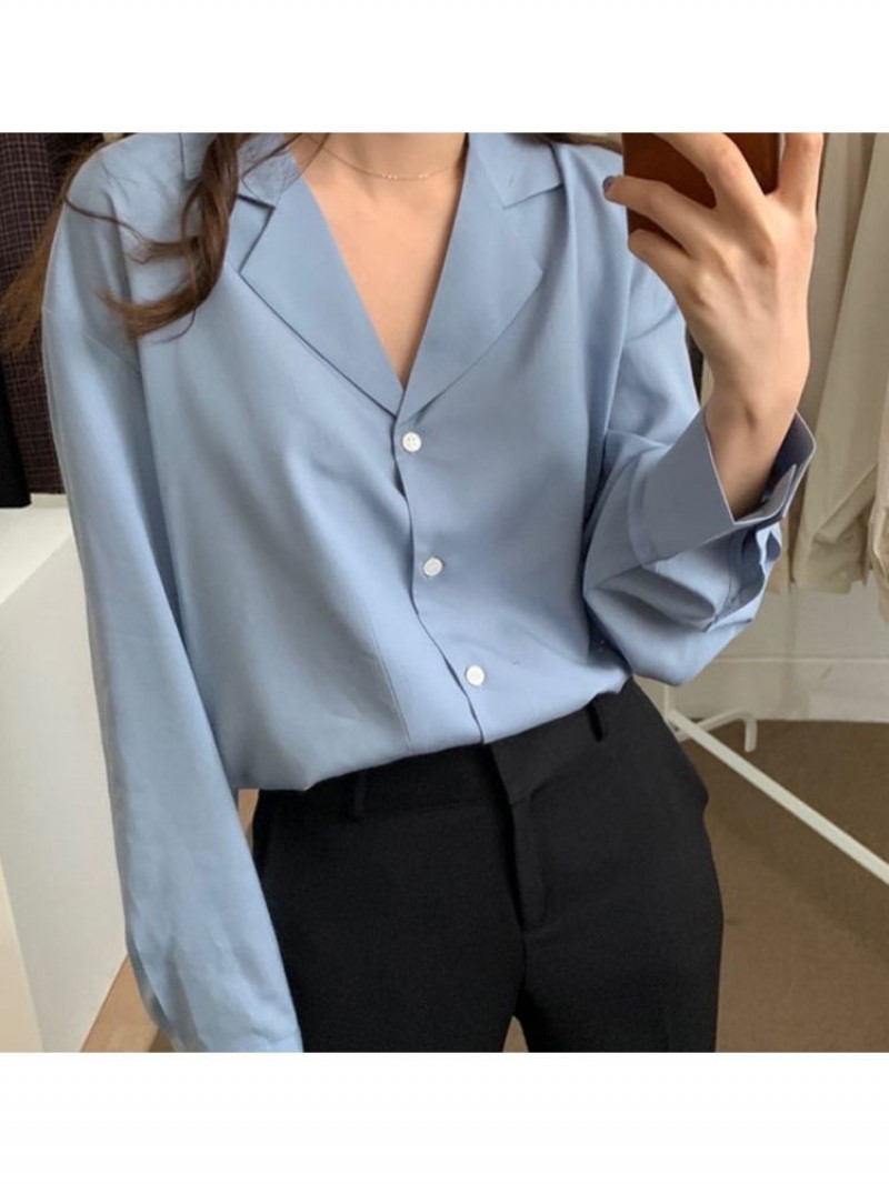 "LIBRE"-OT-3B-18- 翻领长袖纯色衬衫 翻译