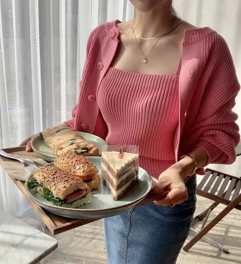 图款 新款女士针织套装,颜色漂亮好看,穿上它回头率超高,今年韩国爆款,喜欢不要错过哦! 翻译