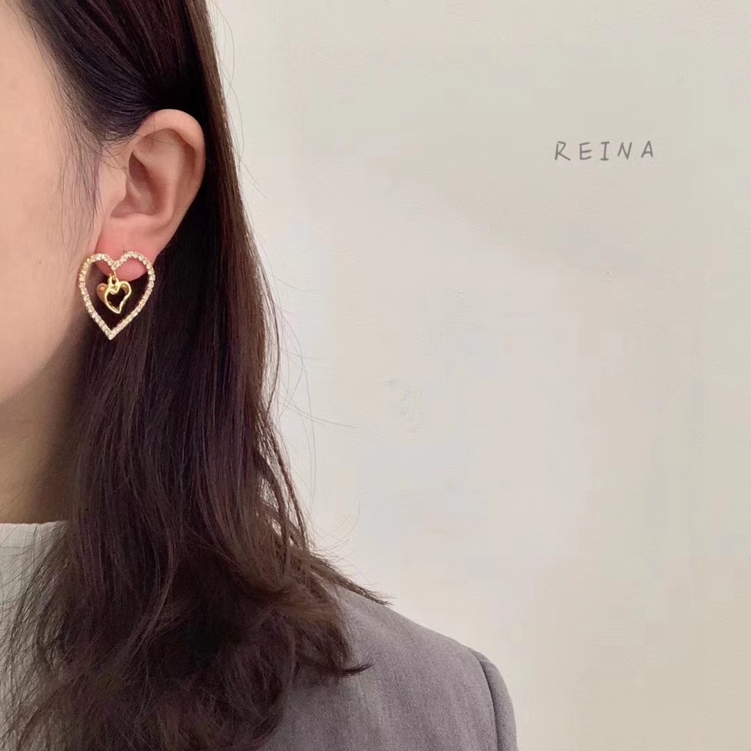 耳环 新款女士满钻爱心耳环,时尚大气好搭配,今年韩国爆款款式,喜欢不要错过哦!