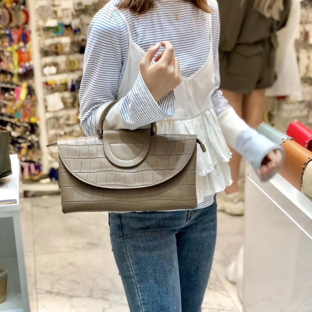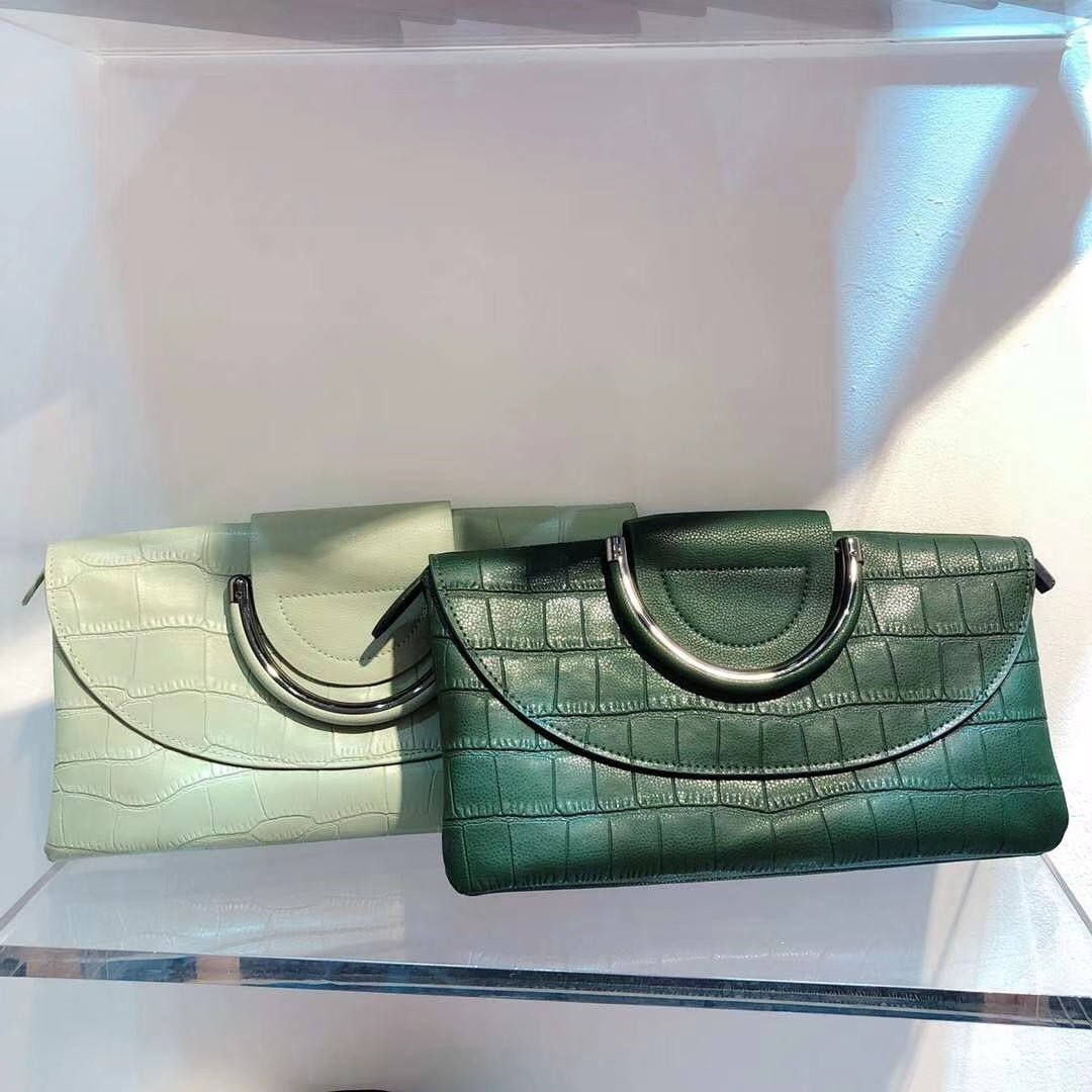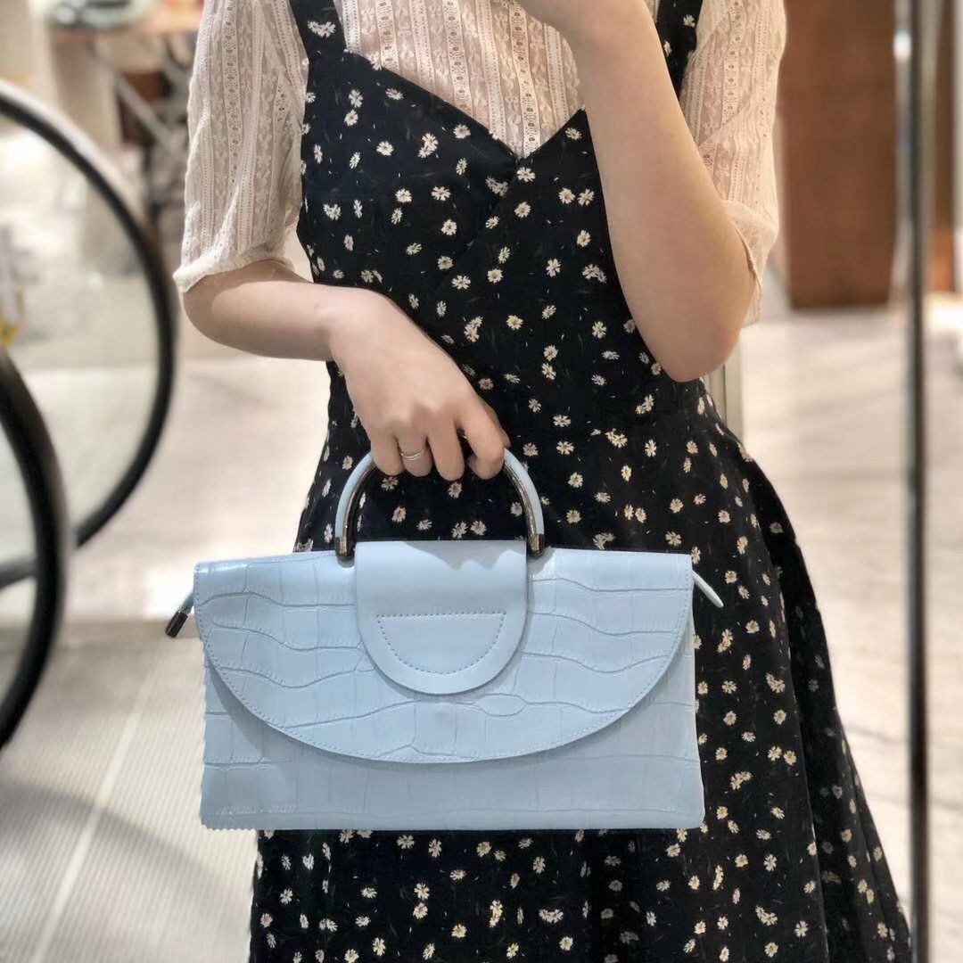 纯牛皮材质 防鳄鱼纹半圆铁环可手提 超实用的一款包