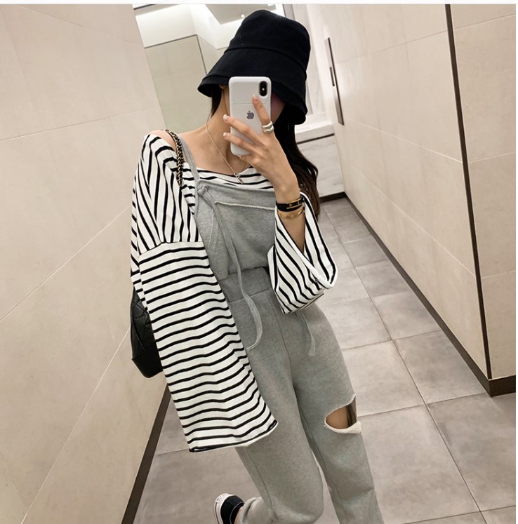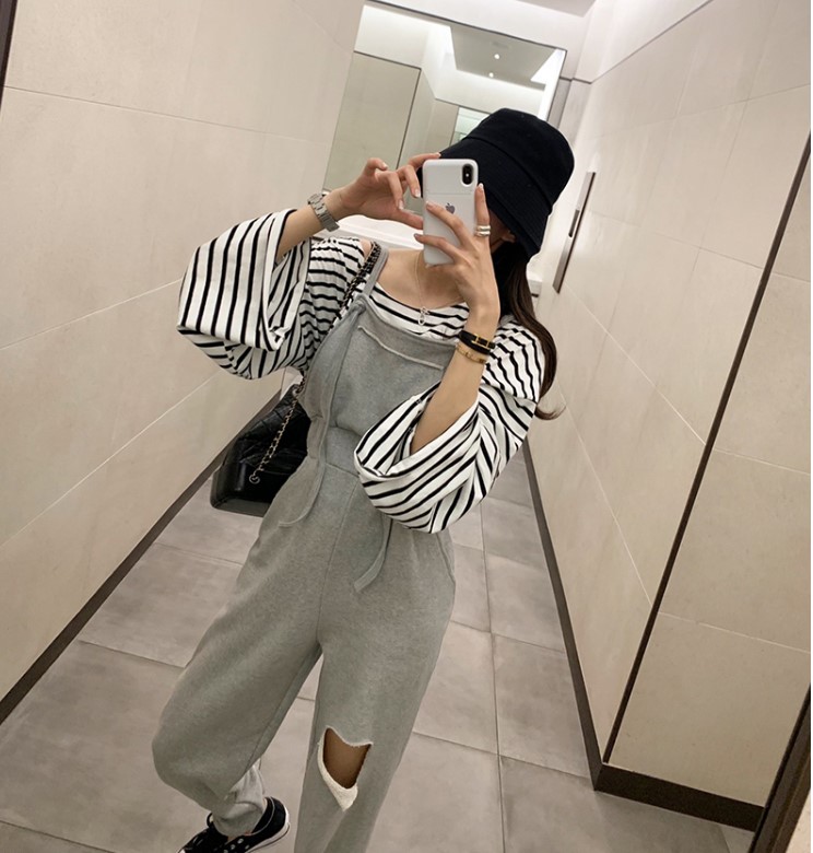 裤子 纯棉破洞背带裤 休闲 时尚 百搭