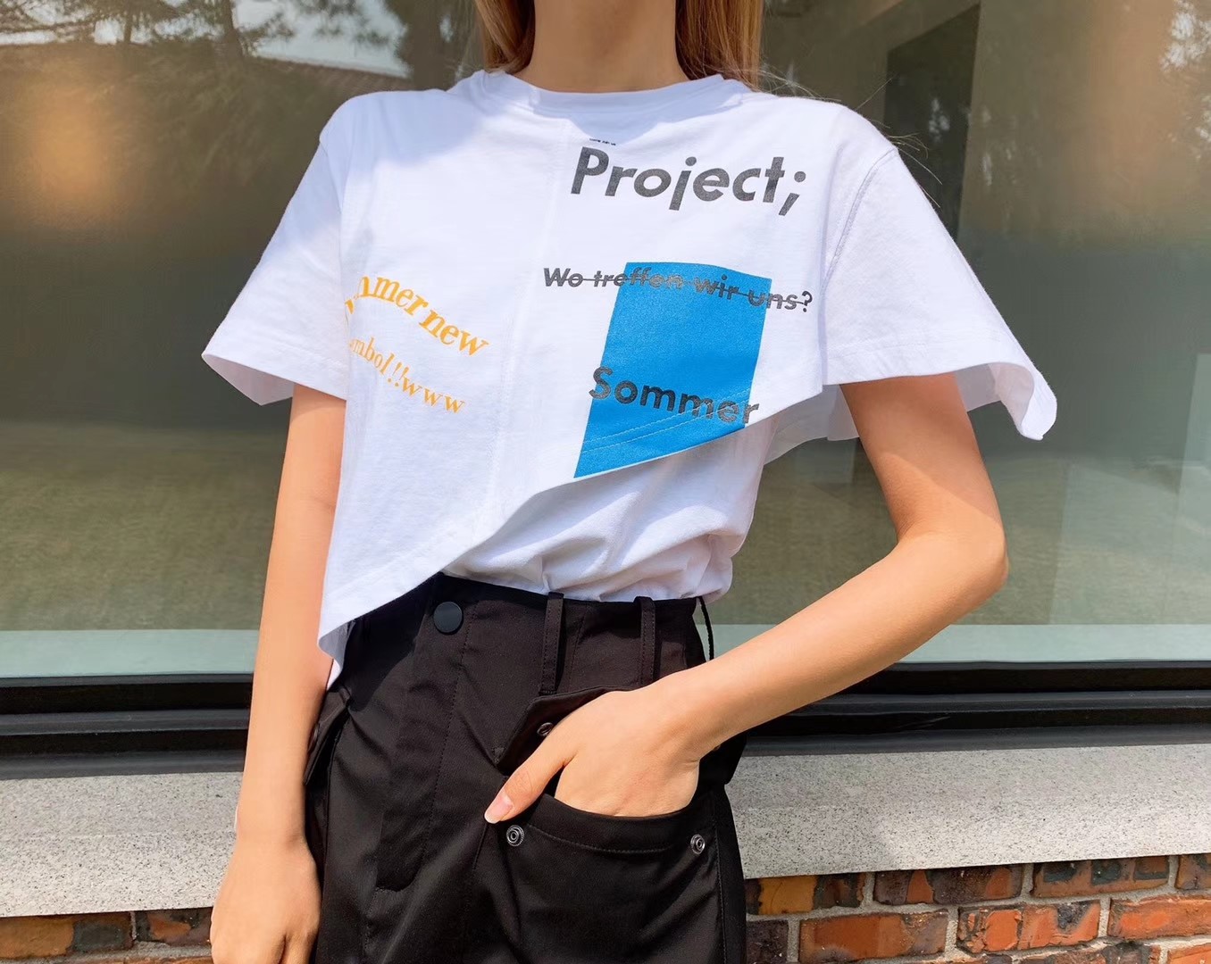 图款 新款女士百搭T恤,上身效果超级好看的,韩国爆款款式,喜欢不要错过哦!