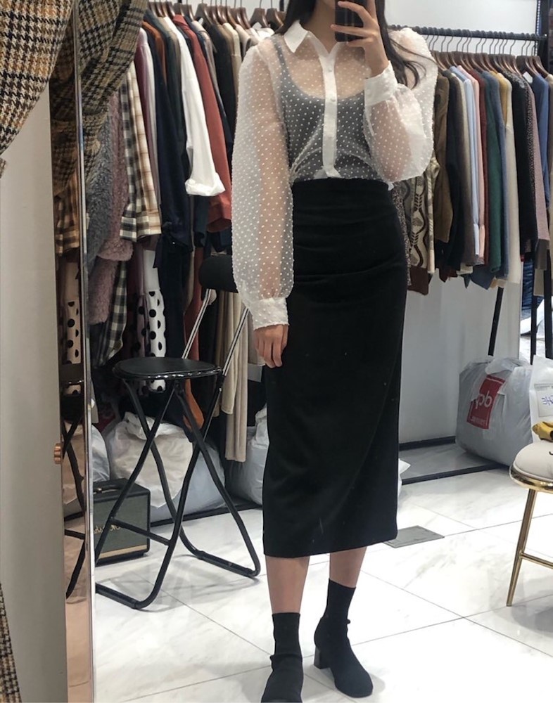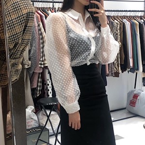 팝콘망사 블라우스 시스루