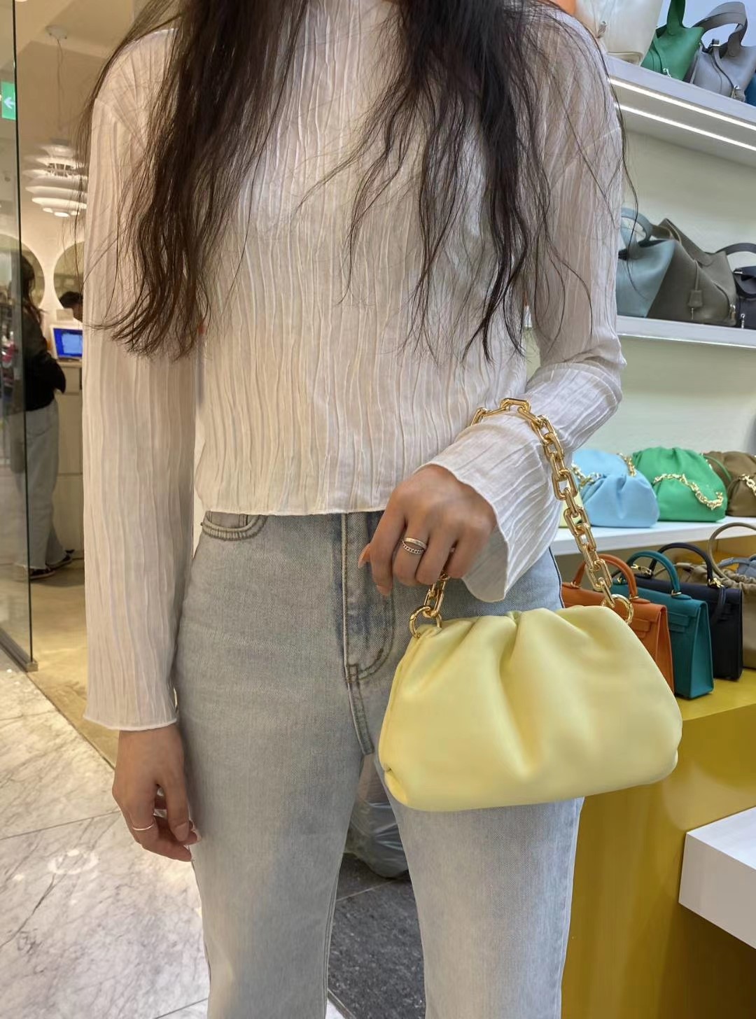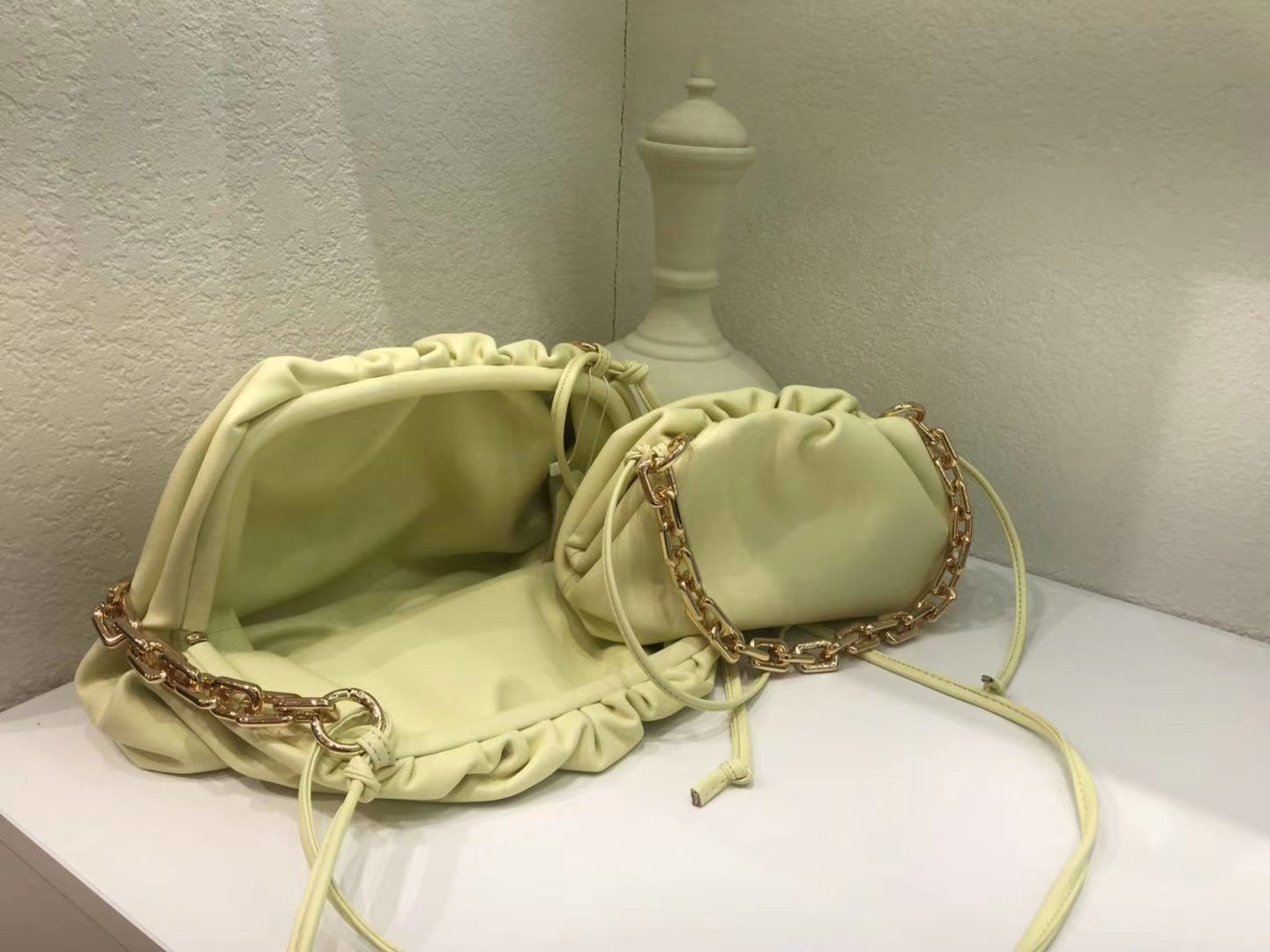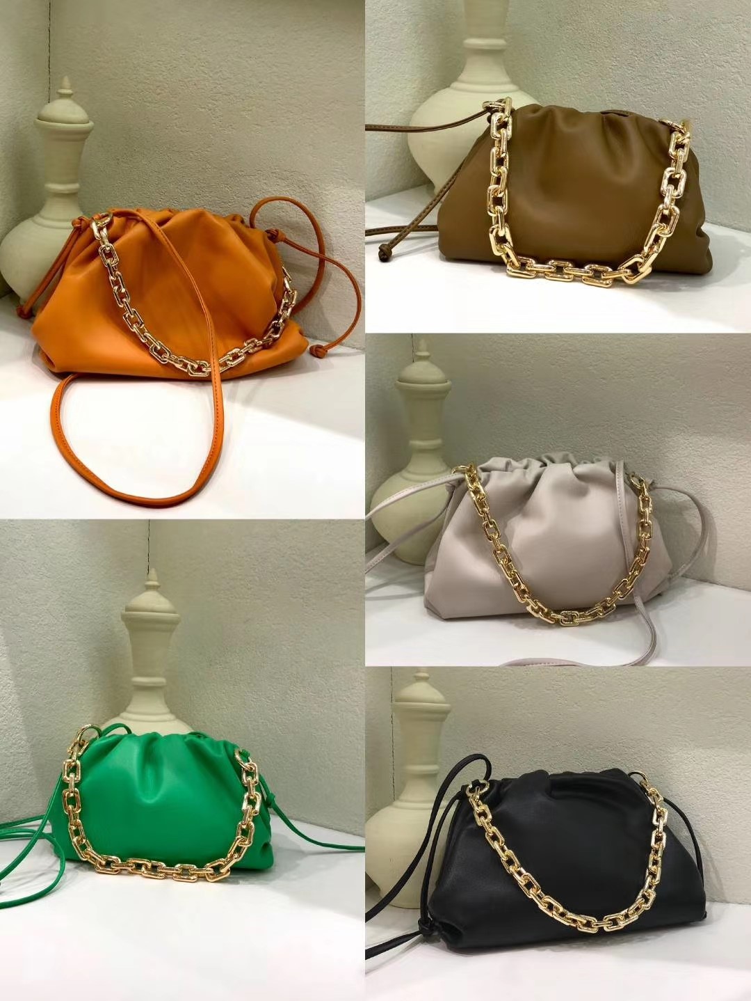 图款 🌹云朵包☁️新到链条装饰款,五金配件超有质感,牛皮手感柔软,分大小号,大小颜色内里相同~. 材质:牛皮 大一码加4000