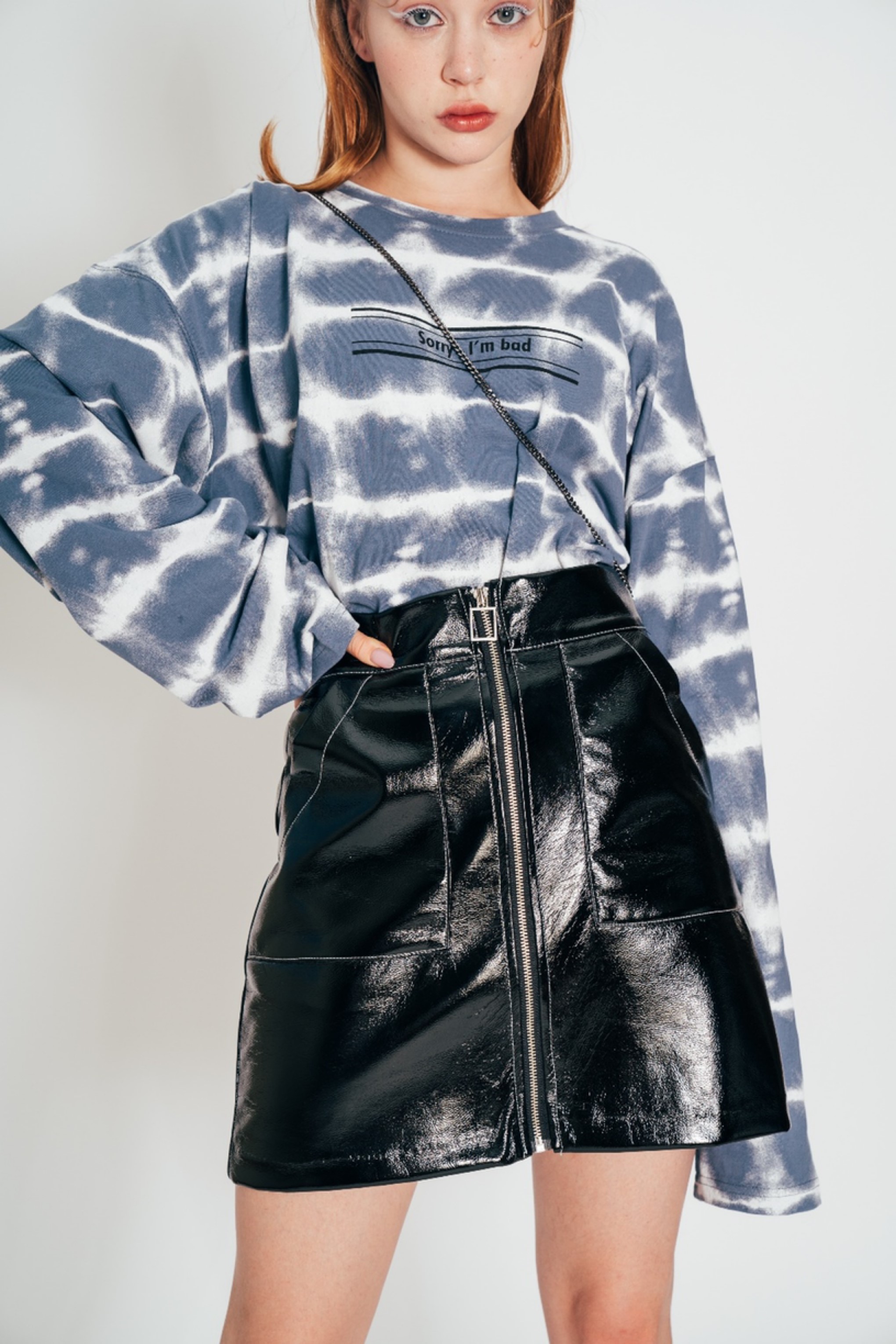 스티치쭈글이레자스커트