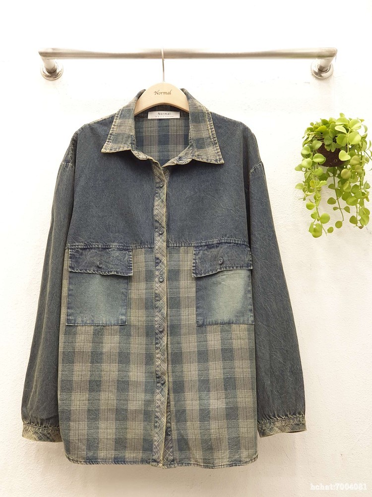 구제체크배색데님남방