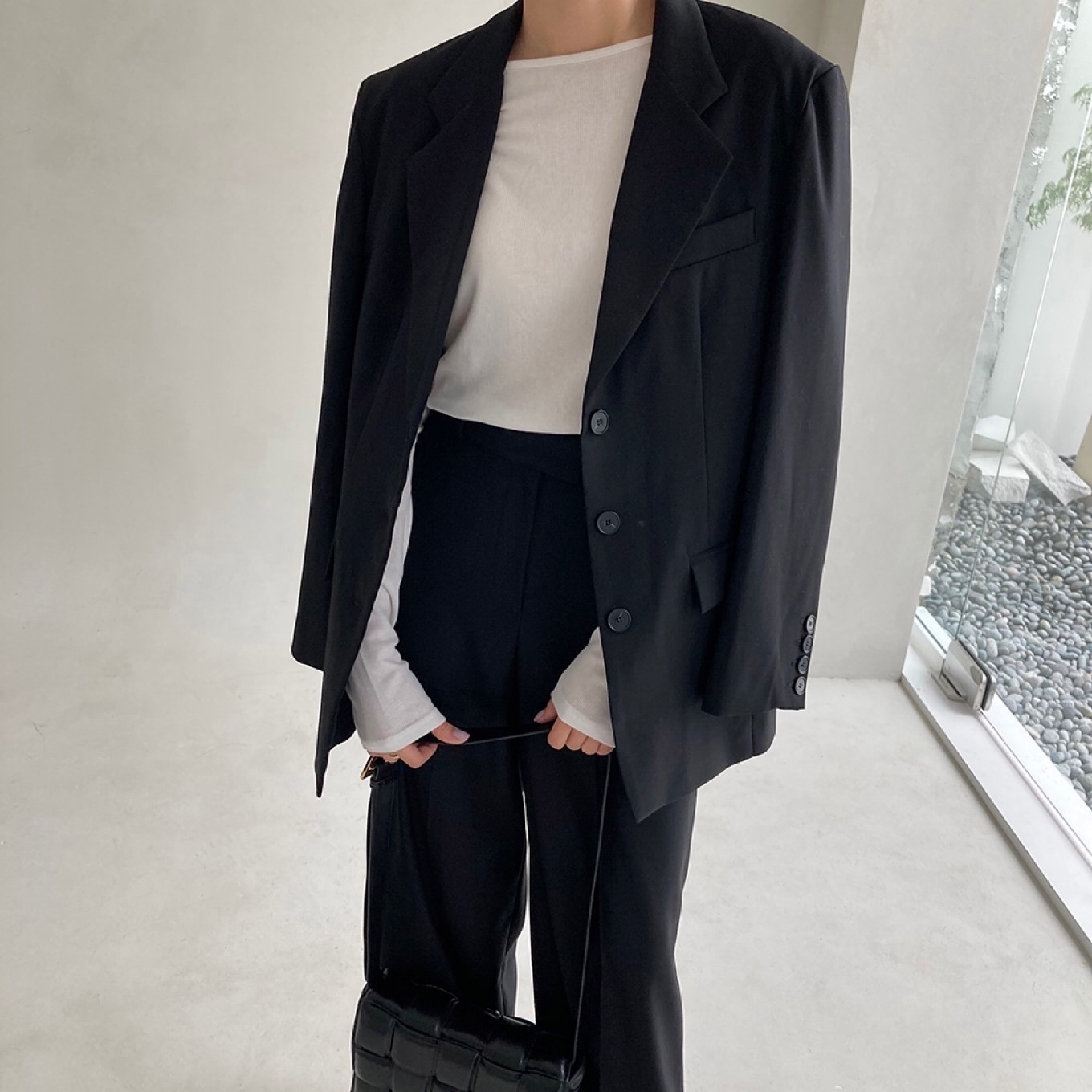 일자로 떨어지는 라인이 체형을 보완해 주며