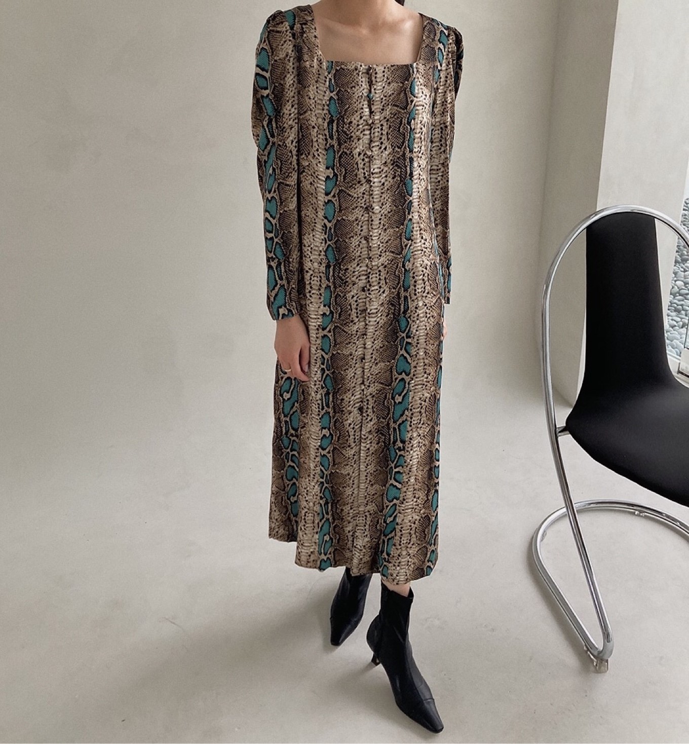 스퀘어넥라인의 롱원피스입니다.