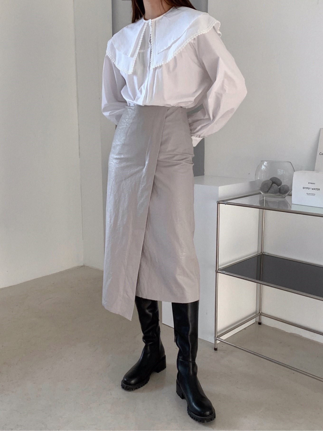독특한 질감의 페이크레더스커트